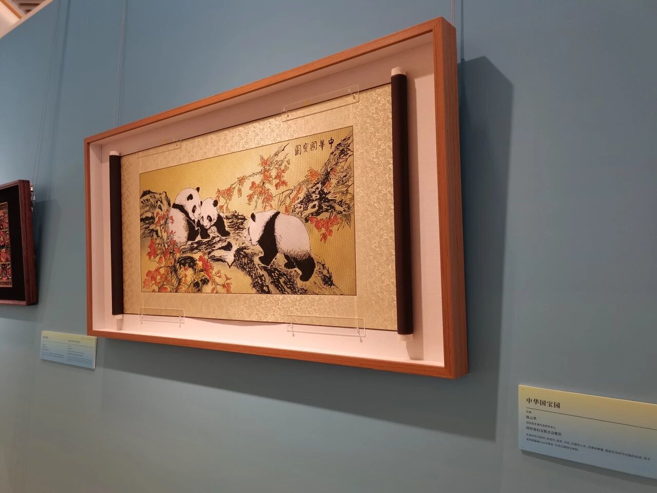 作为中国四大名绣之一,蜀绣以严谨细腻、光洁清秀著称。在这幅作品中,国宝熊猫的憨态可掬被表现得淋漓尽致,针脚间流淌着人与自然和谐共生的美好愿景。