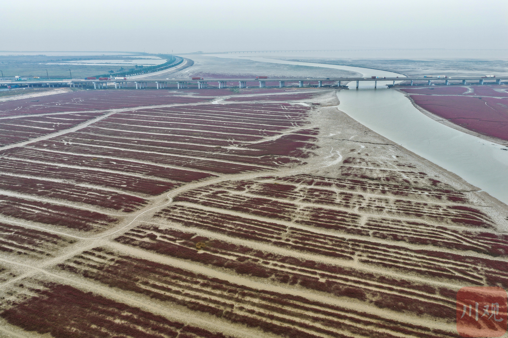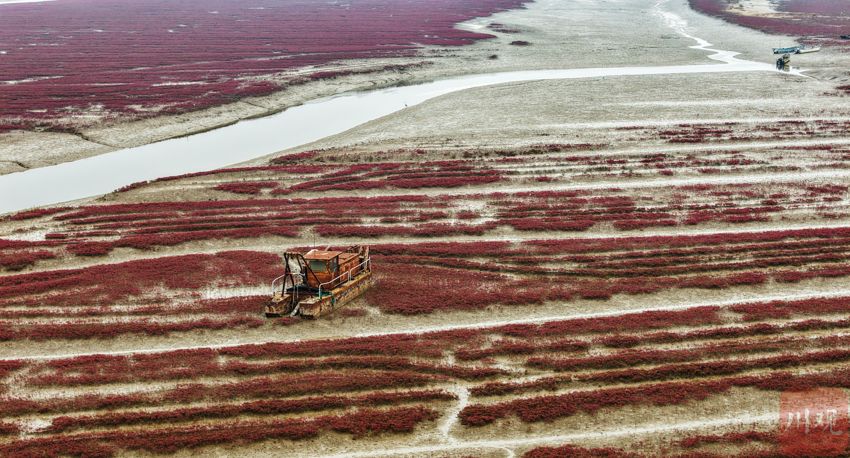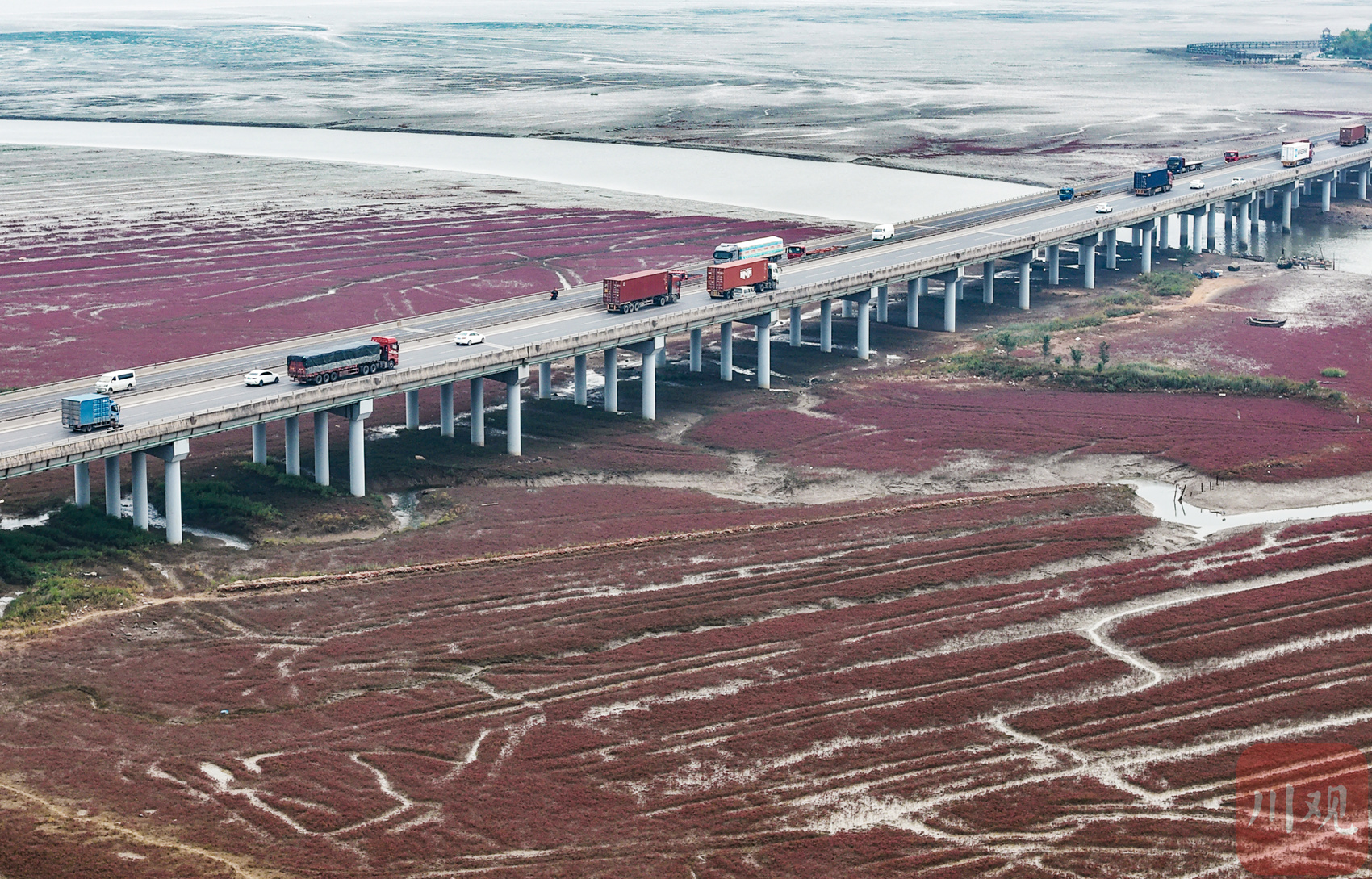 红海滩迎来最佳观赏期,靓丽的生态观光风景线。