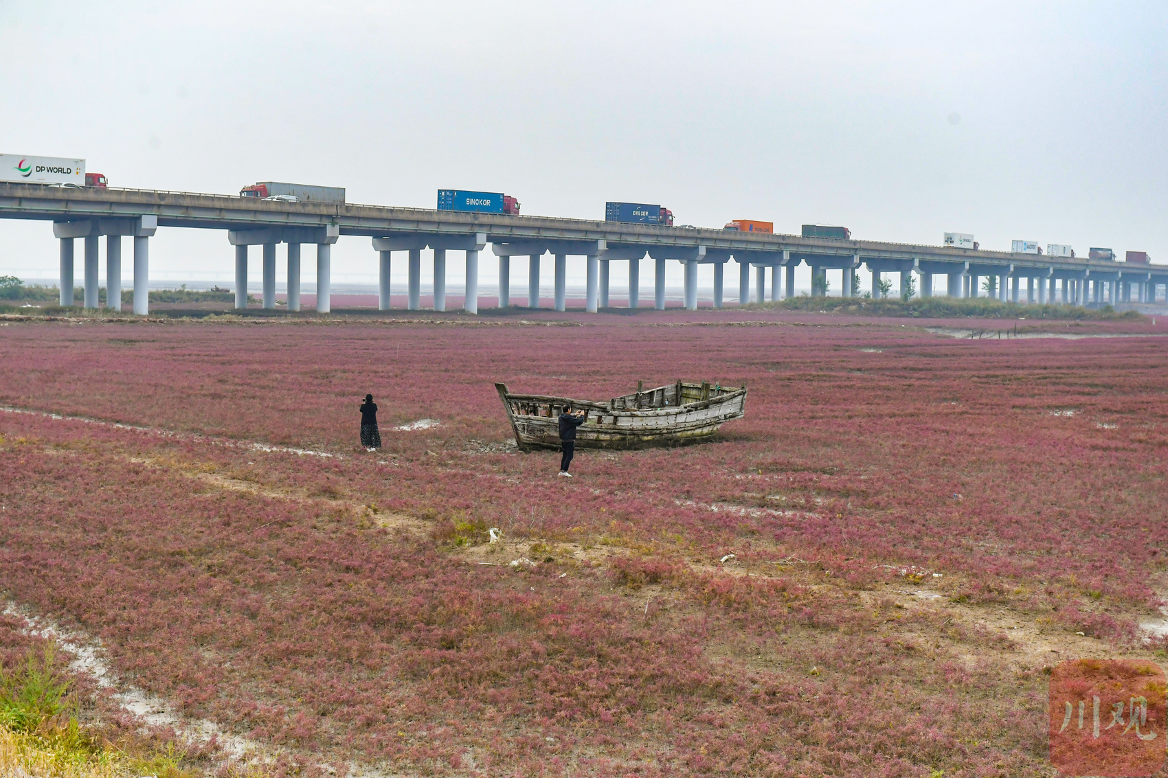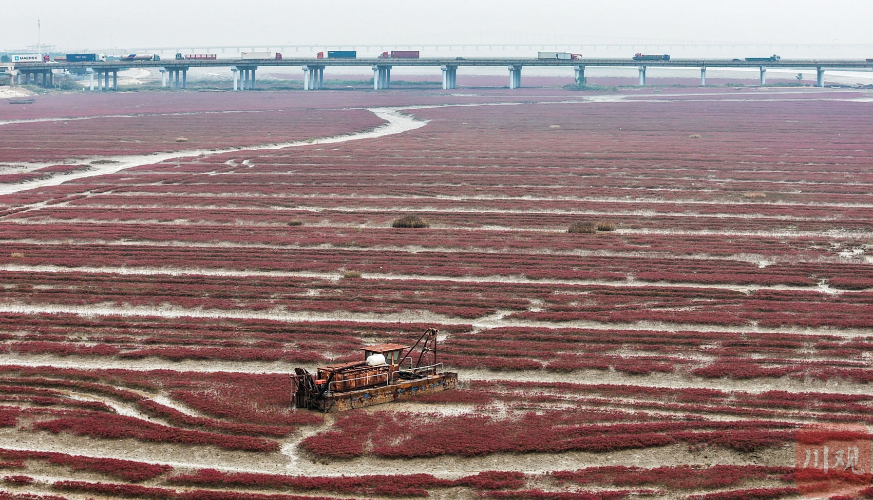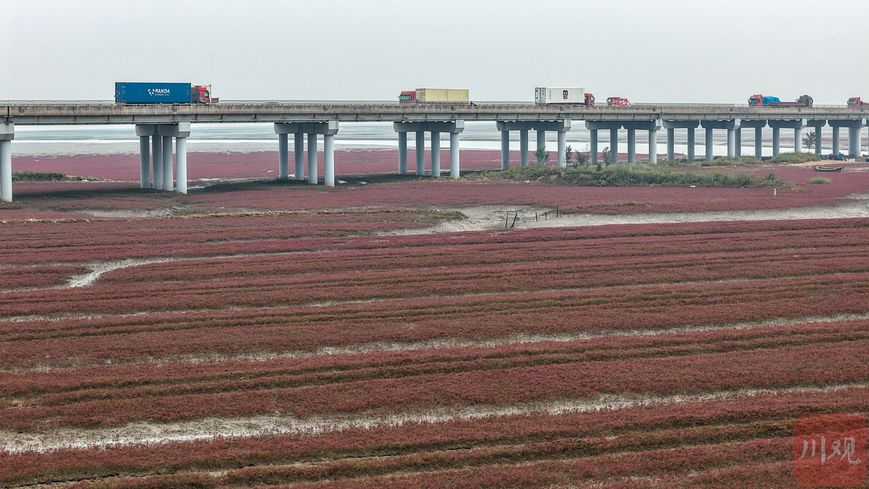 红海滩迎来最佳观赏期,靓丽的生态观光风景线。