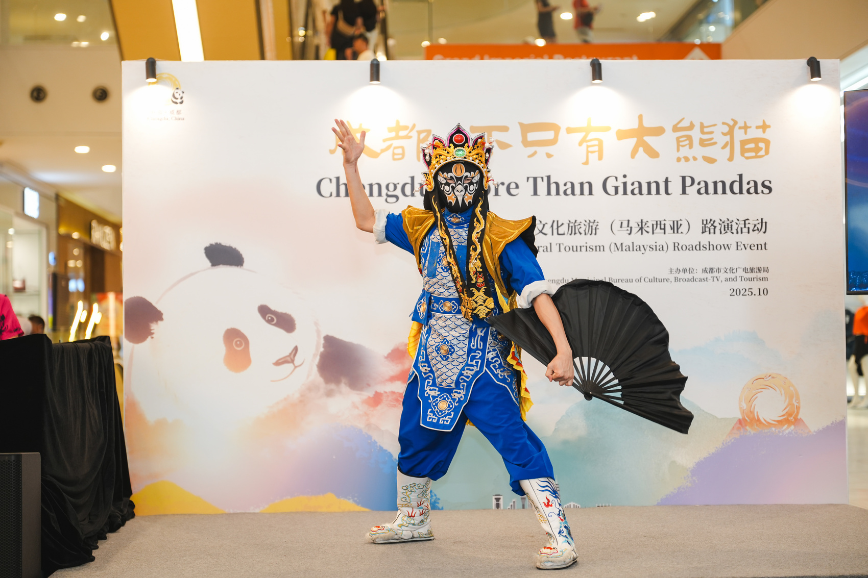 在中马互免签证政策红利下,如今马来西亚已成为四川入境游的重要客源地。在吉隆坡路演现场,大熊猫元素与川剧变脸交相辉映,现场循环播放的成都四季美景与人文故事,营造出浓厚的成都氛围,吸引当地不少市民驻足围观。VR体验更是吸引不少人参与,从成都青白江城厢古城启程,依次穿越三星堆的青铜神域、宝墩的远古聚落、金沙的太阳崇拜之地,直至都江堰的治水奇迹,身临其境地感受古蜀文明的恢弘气象与精神内核。