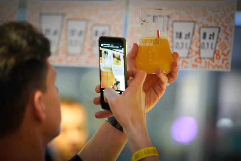 10月16日,在波兰华沙举行的第20届华沙啤酒节上,一名啤酒爱好者对着手中的啤酒拍照。