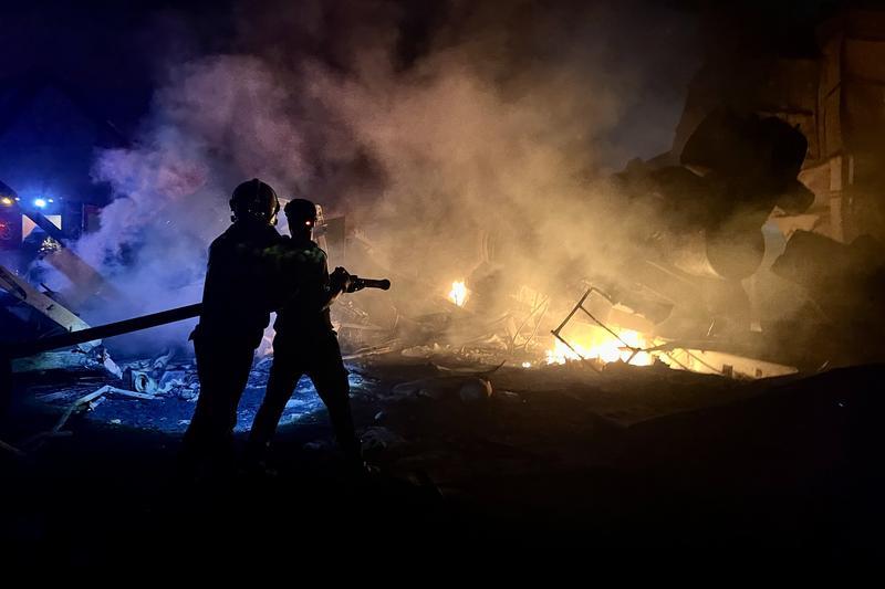 10月16日,在黎巴嫩安萨尔,人们试图扑灭遭空袭地点燃起的大火。
