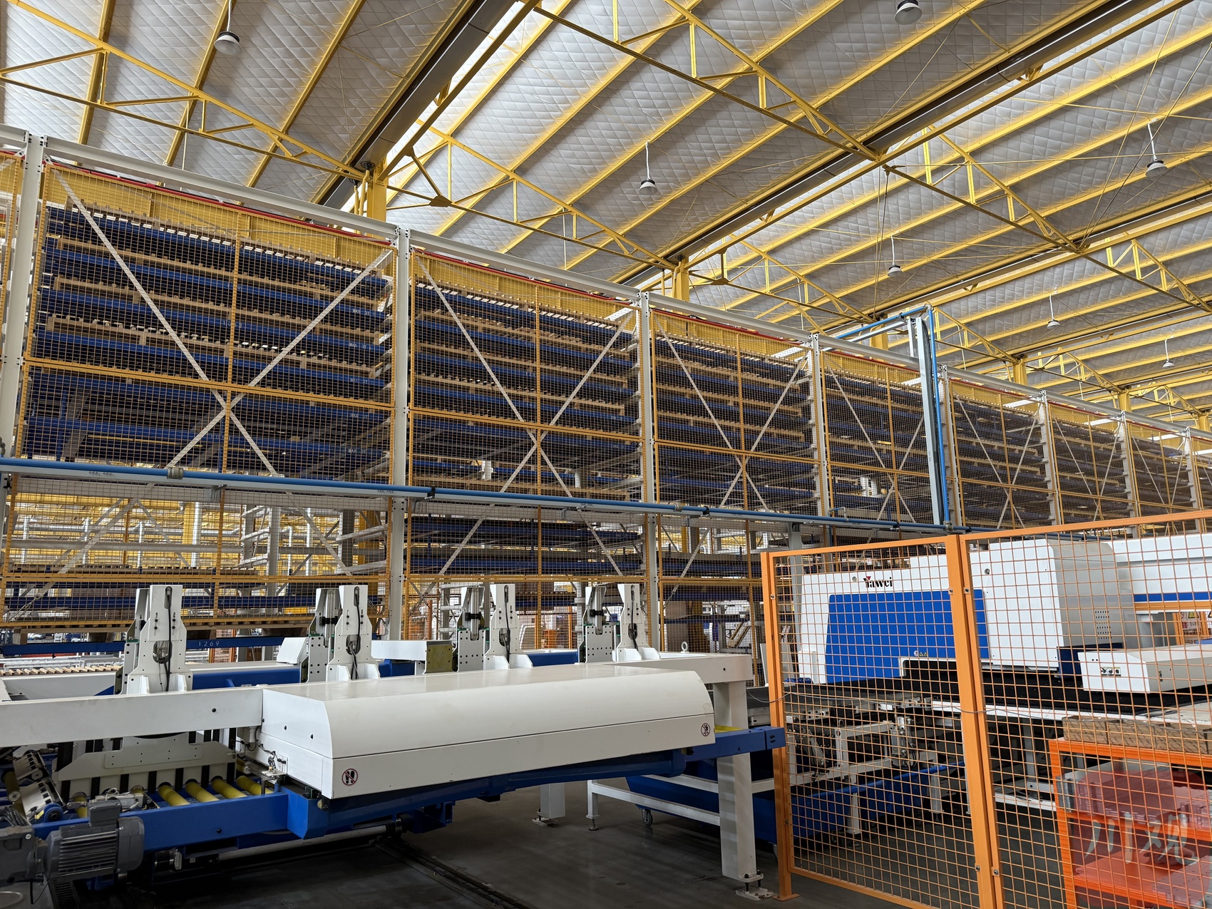 他特别在钢板加工生产线前放缓了脚步,语气中难掩自豪。现场只见一块钢板被自动抓取、定位,随后激光打孔、精准切割,一系列动作行云流水。“以不同规格的钢板结构件为例,”他解释道,“这条新生产线能自动识别需求,精准适配各类模块,真正实现了‘柔性制造’。”而在另一边,数台AGV小车正沿着预设路线,将加工好的部件悄无声息地运往下个工位。
