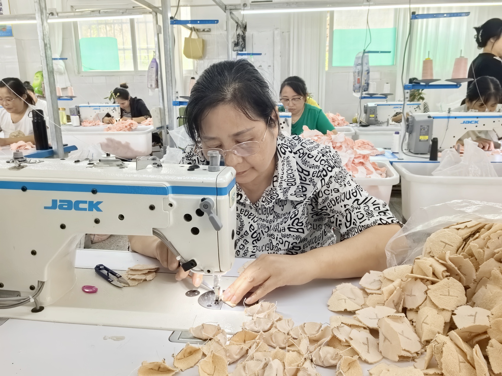 “厂房和设备足够多,订单已经排到明年了,我们还要大量招人。”10月17日,达州万源市铁矿镇南门社区,四川和誉玩具有限公司(以下简称“和誉玩具”)车缝部车间安静得只听见脚踩缝纫机的声音,10多名工人埋头缝制无绒玩具缝口,车缝部主任何影也亲自上阵。