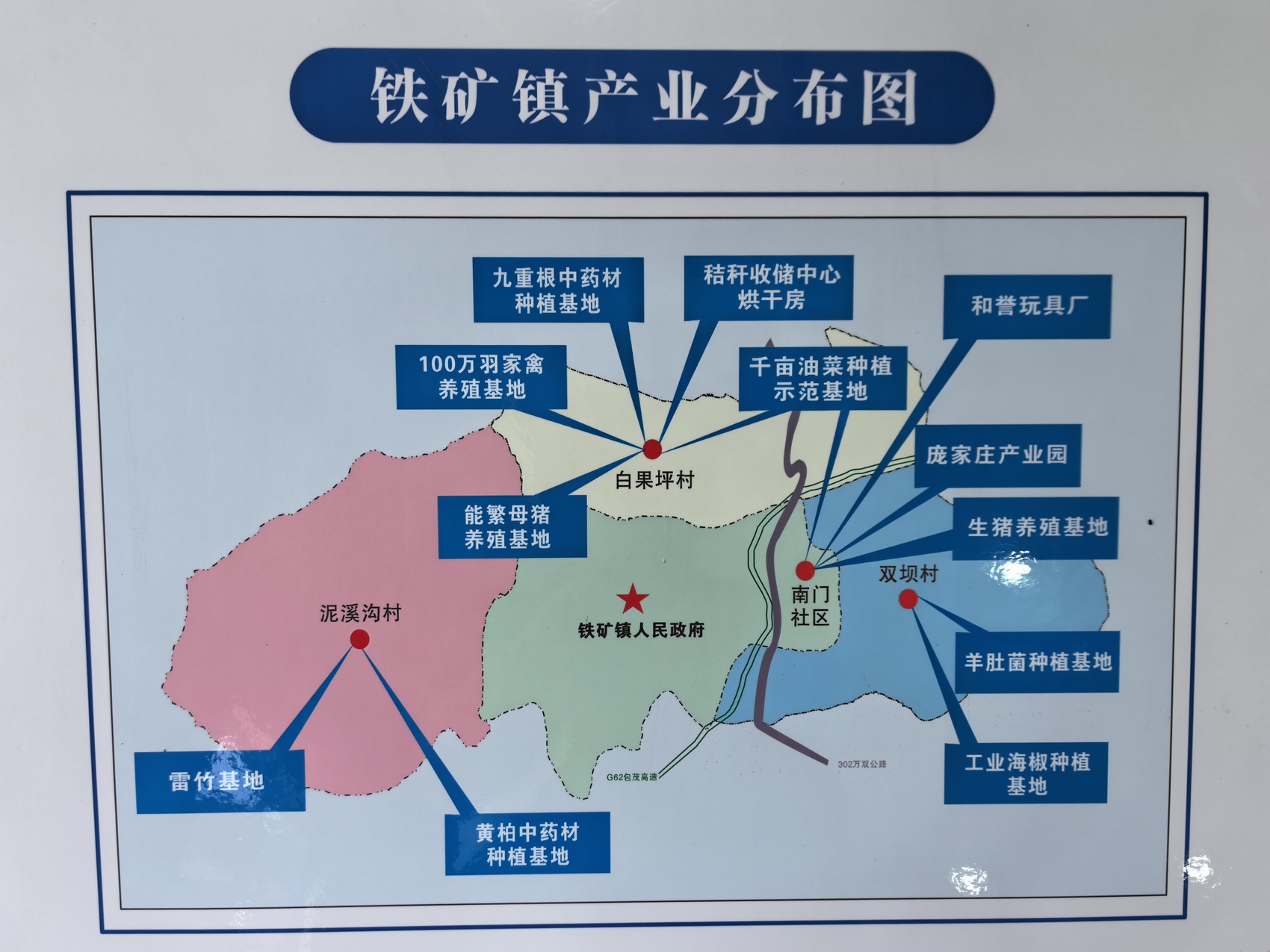 陈邦熬自豪的是,除了加工厂,广袤的田野也满是就业岗位。他翻出手机里的“铁矿镇产业分布图”,成规模的有雷竹、中药材、羊肚菌、工业辣椒、油菜种植,以及能繁母猪、家禽养殖基地等。“像中药材基地的管理、收获,能提供稳定就业岗位,农忙时还需要大量的临时用工。”陈邦熬说。