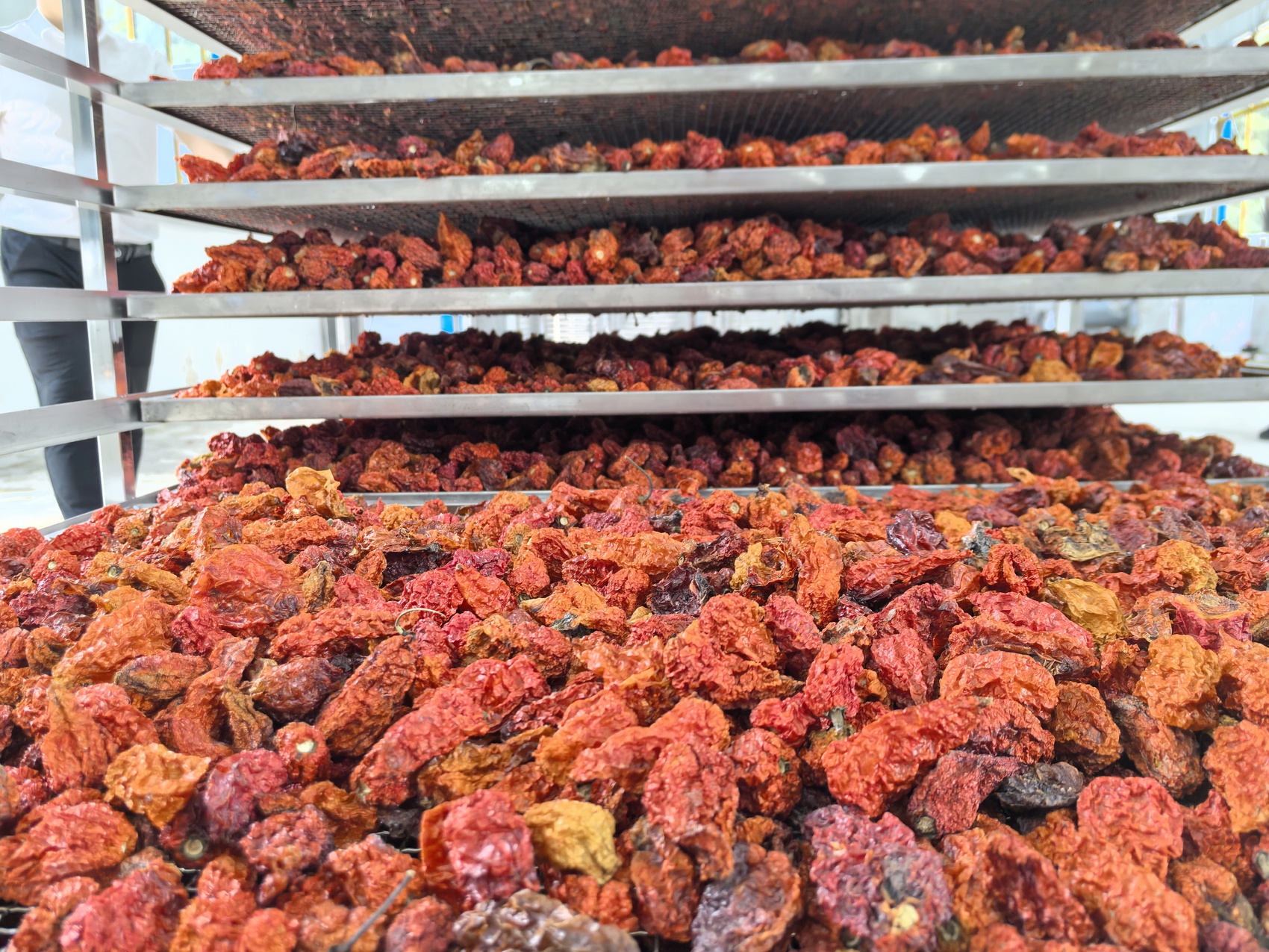 “镇上其余3个村也有就业点,村民往往更愿意就近就地务工,不去较远的地方。”陈邦熬一语道破。他领着记者前往铁矿镇白果坪村烘干房,它由村集体经济资金投资建设,一批呈锥形的工业辣椒正在这里烘干,几位日薪制的村民忙活着密封包装。