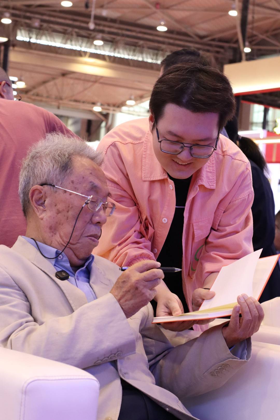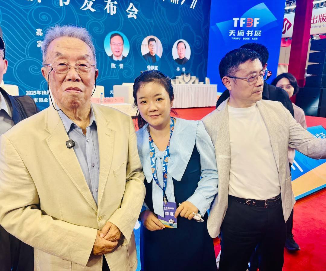 发布会前,他特意走进四川出版展区,笑称“我要找到我那本书在哪展出,我要跟我那本书合影”,并主动邀请责任编辑一起留影。这位九旬大家在展馆中从容穿梭的身影,成为书展首日一道动人风景。年逾鲐背之年,王蒙依然笔力充沛,仅在2025年就已出版三部新作,接下来还有作品在出版路上。