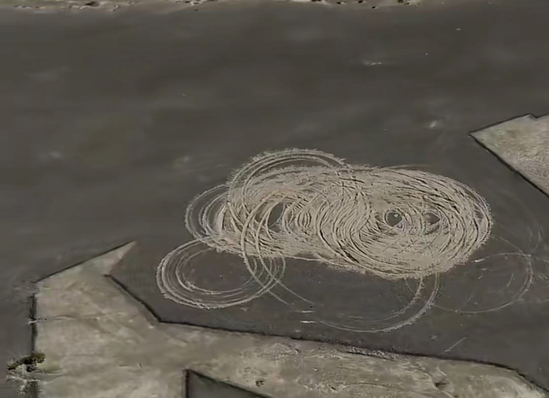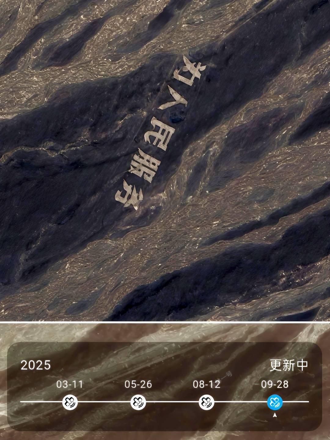 2025年9月,博主“略靠谱旅社”(本名陆遥)在卫星地图上发现哈密戈壁的“为人民服务”标语周围出现了异常痕迹。对比历史图片并前往现场一探究竟,确认这些巨型地标遭到了车辆漂移破坏。