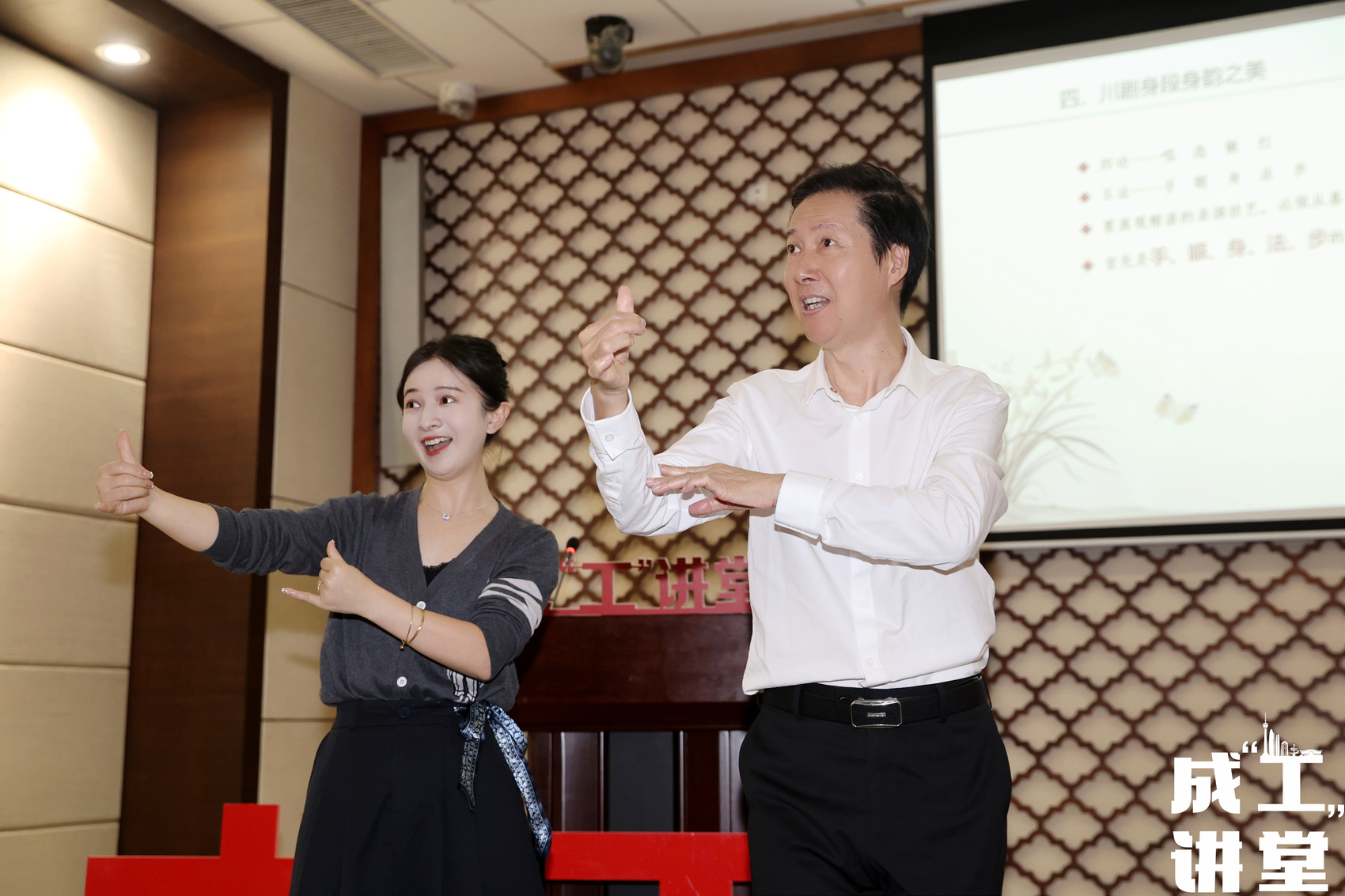 讲座期间,肖教授还邀请职工上台互动,现场教学踏步、跨步、兰花指、剑指等身段技法,让观众在举手投足之间感受川剧艺术的魅力。