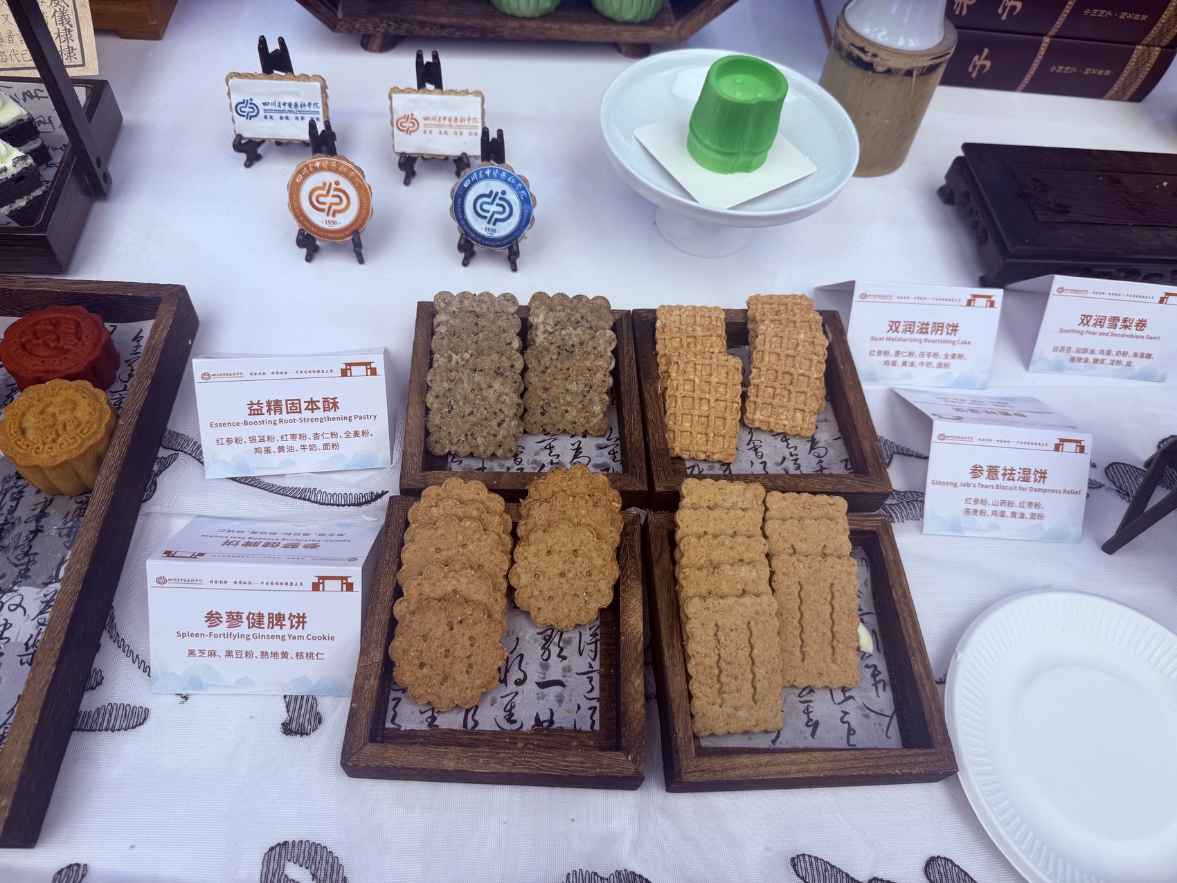 10月18日,成都召开的首届“中医药创新与健康”学术会议上,茶歇间的甘麦浮雪咖啡、畅心赤椒汤、益精固本酥等各类中医药饮食、日用品琳琅满目,延续着川派中医创新的探索、中医药生活化的尝试。