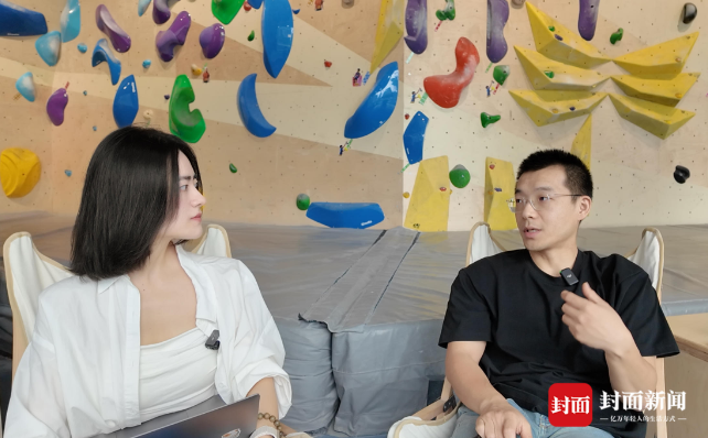 封面新闻记者专访“香蕉攀岩”的创始人钱小磊。(封面新闻记者 拍摄)