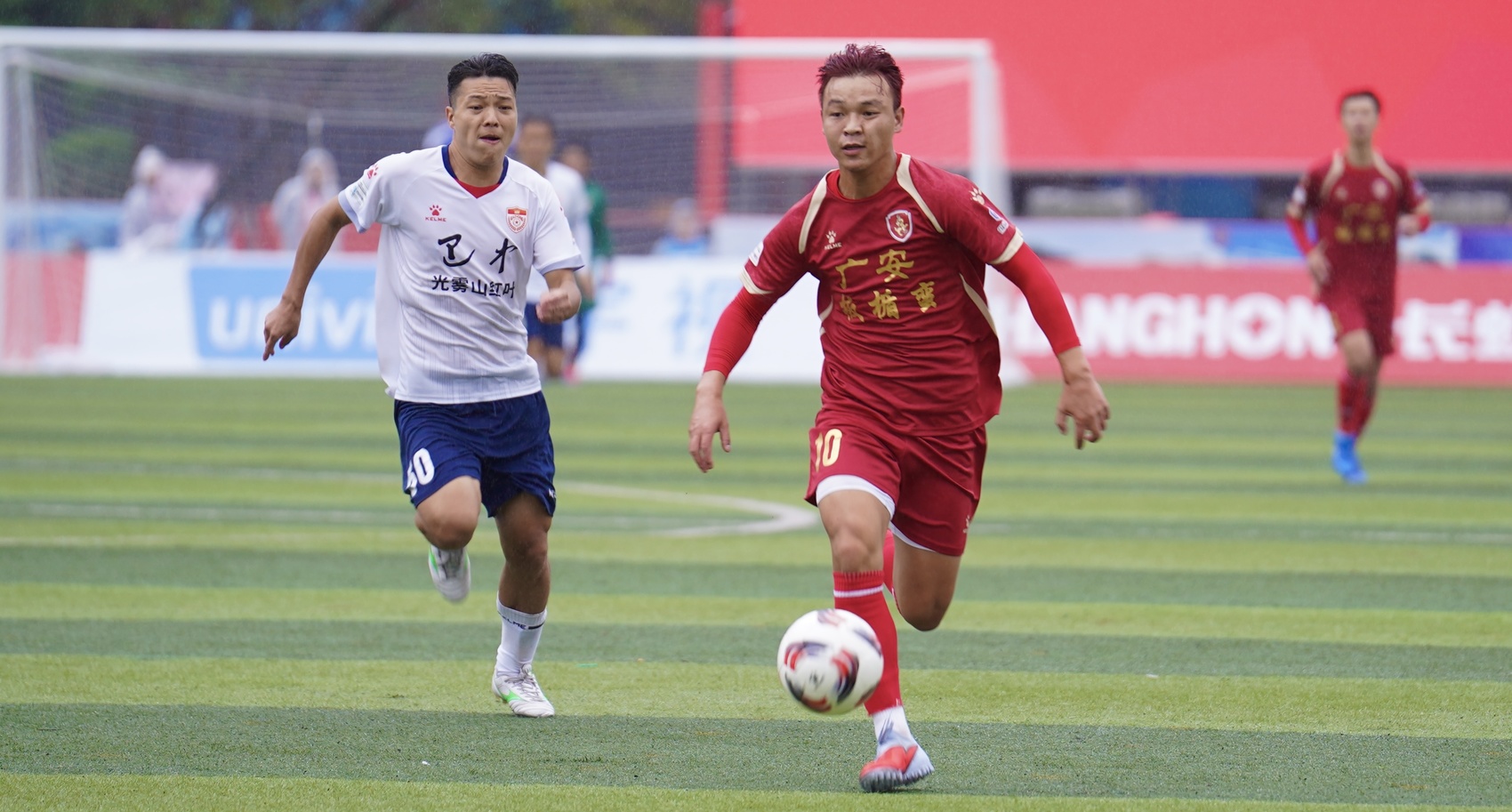 广安板楯蛮队10号球员李松洋带球进攻。(胡力文 摄)