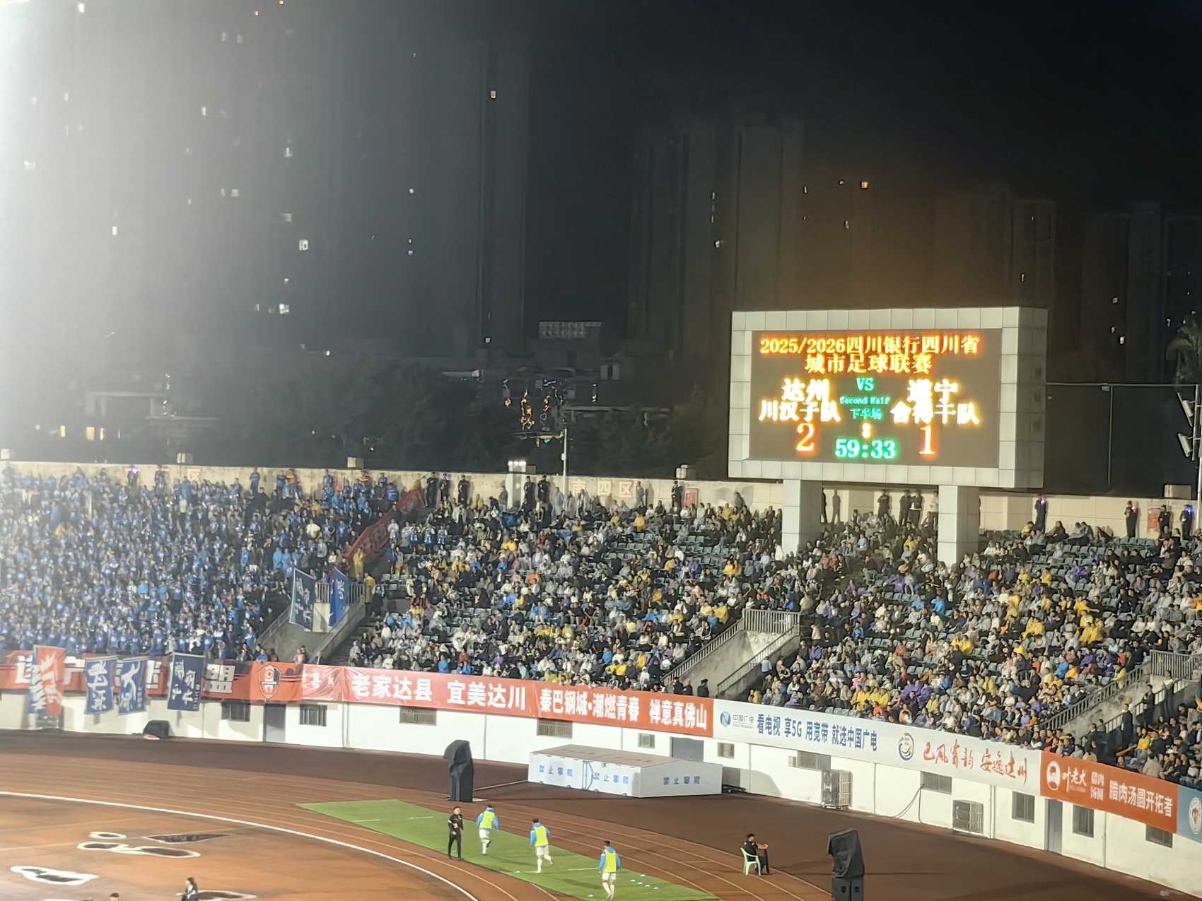 10月19日晚,川超联赛达州川汉子队主场迎战遂宁舍得干队。