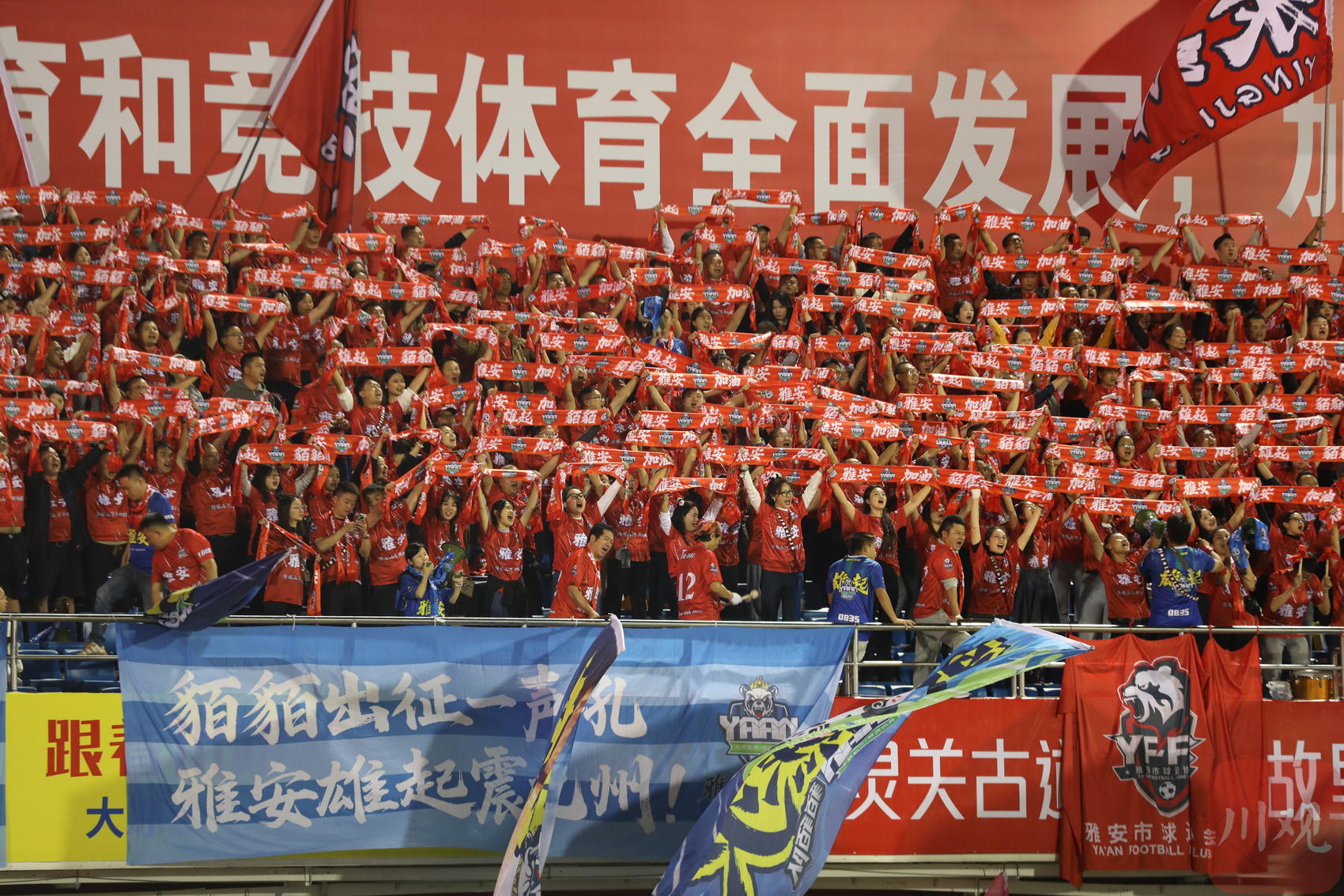 雅安队球迷为比赛加油。