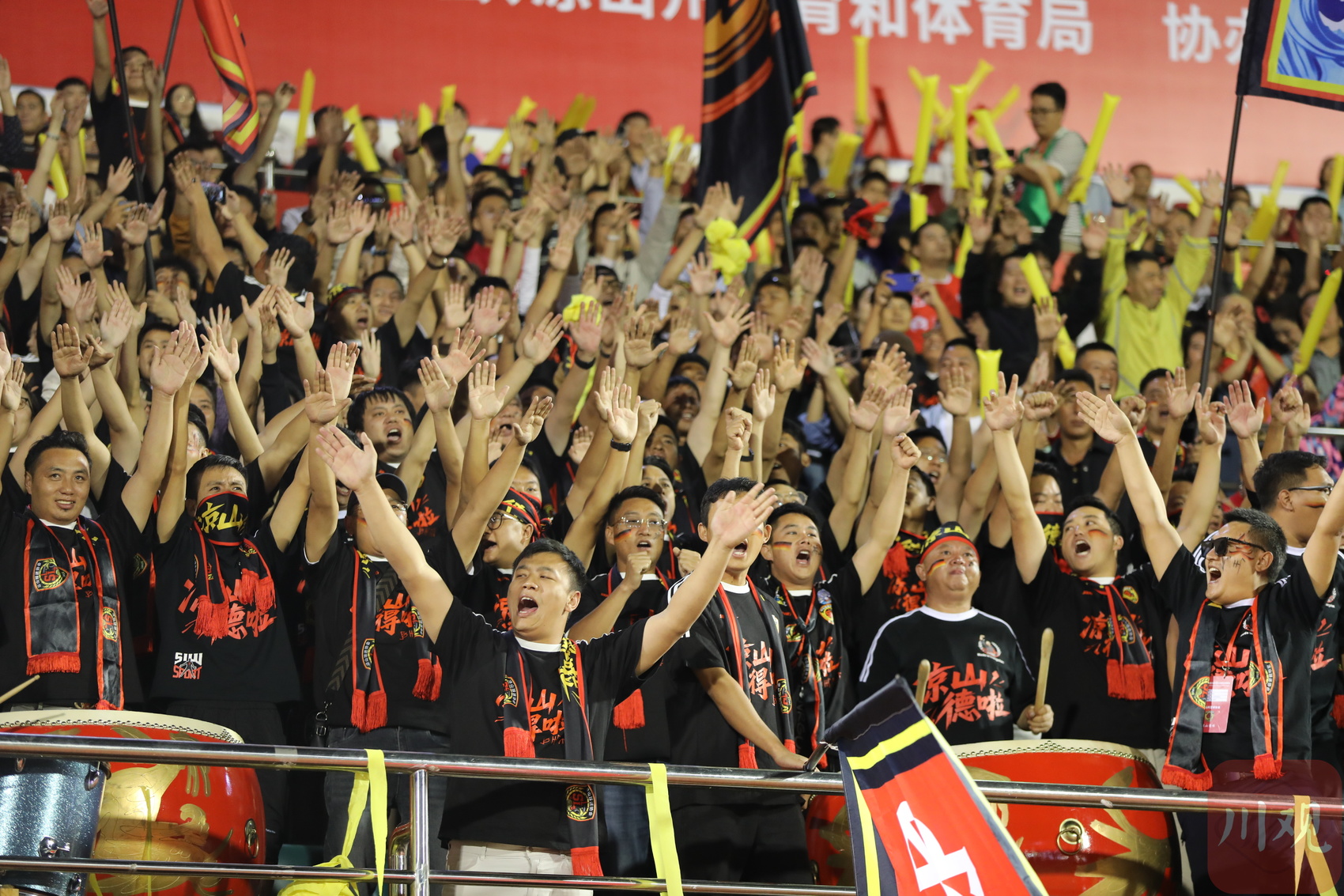 凉山队球迷为比赛加油。