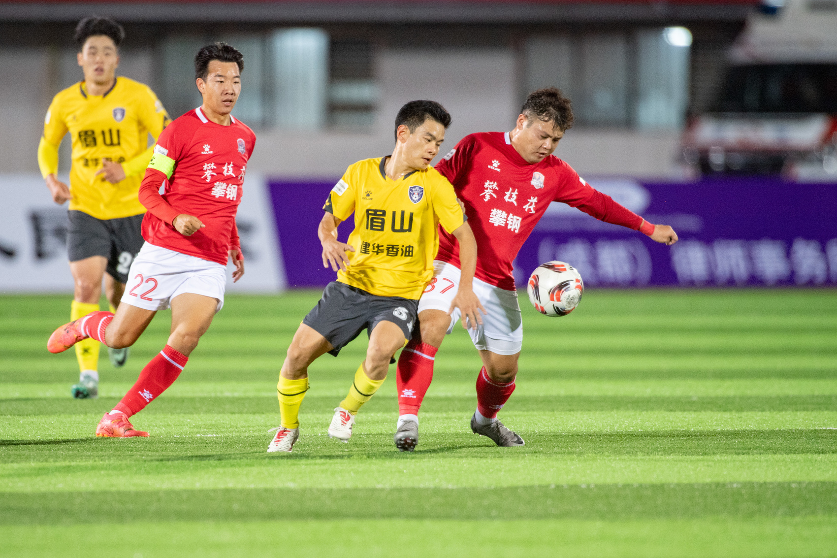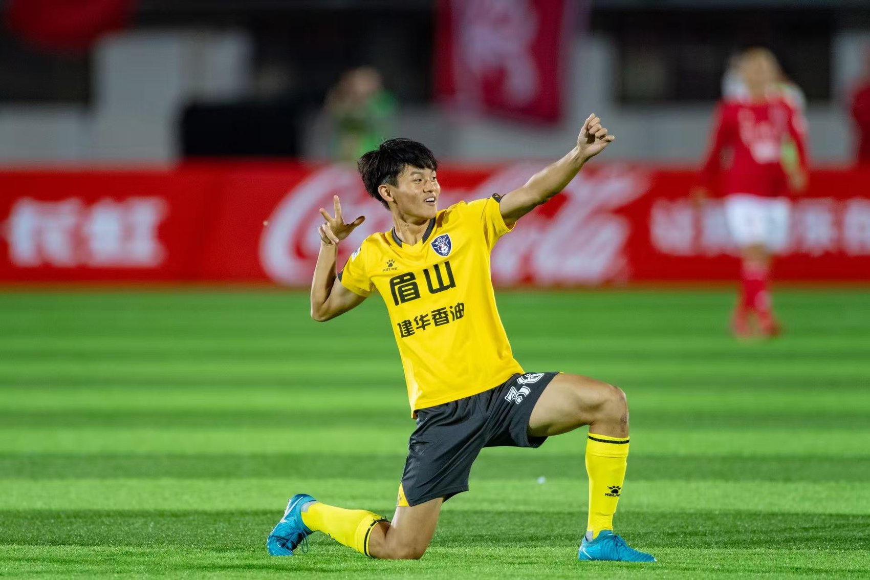 眉山队36号球员卢梓瀚踢进一球
