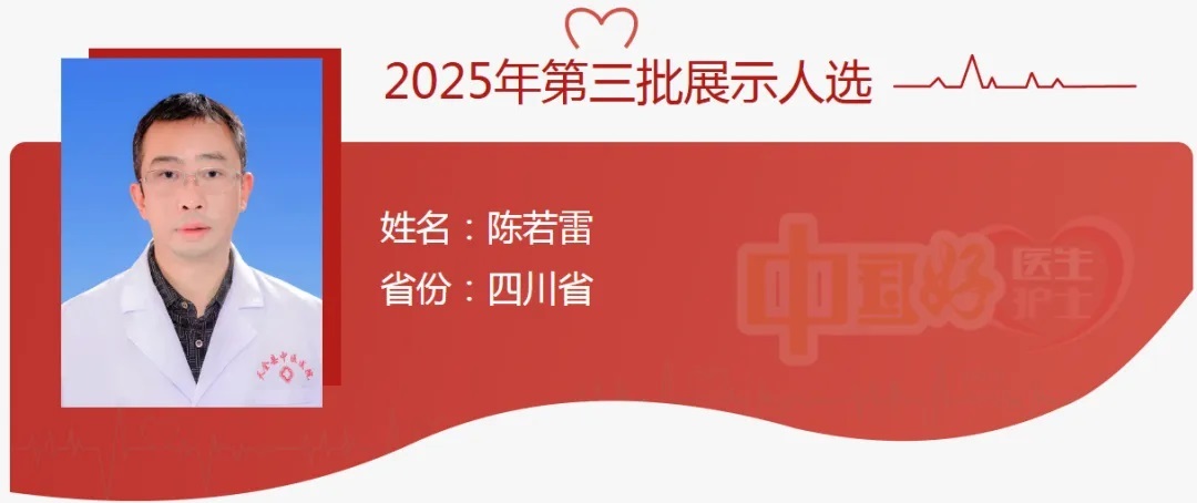 陈若雷,汉族,1976年11月出生,四川天全人。1998年8月参加工作,2001年1月加入中国共产党,现任天全县中医医院党委副书记、院长。2012年被评为“全国中医药系统创先争优先进个人”,2025年被评为“全国卫生健康系统先进工作者”。自2011年起,先后被授予“四川省民族团结进步模范个人”“四川省拔尖中青年中医师”“四川省中医药传承创新发展先进个人”“第九批四川省基层卫生拔尖人才”“四川工匠”“四川省优秀共产党员”“健康四川—大美医者”等荣誉称号。
