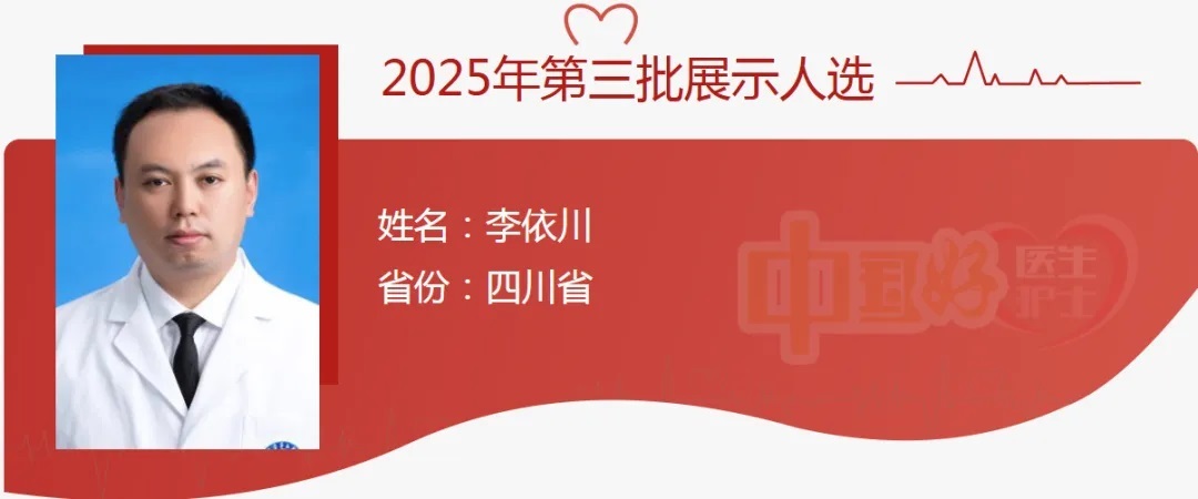 李依川,汉族,1982年5月生,广安市人民医院肝胆胰外科主任兼医务部部长,副主任医师。他始终坚守从医初心,把患者生命安全放在首位,全心全意护佑人民健康。他在抗疫一线及医疗管理、医疗技术等多个领域发光发热。2024年2月获“四川省医疗卫生工作先进个人”称号;2025年4月获“全国卫生健康系统先进工作者”称号。