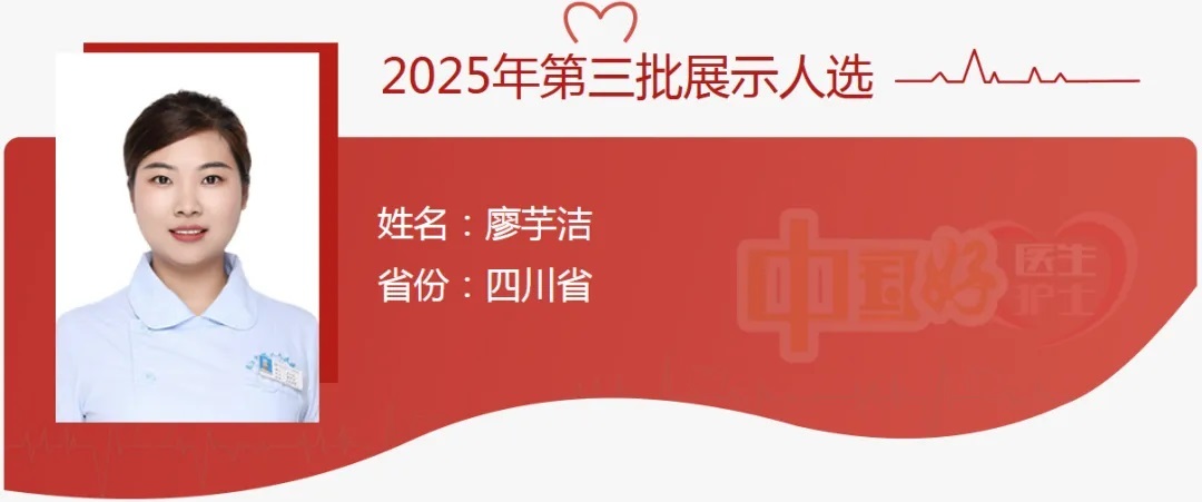 廖芋洁,1989年6月出生,中共党员,现任内江市第二人民医院麻醉手术中心副护士长、“廖芋洁护理技能大师工作室”负责人,获国家专利3项,先后荣获四川省“五一劳动奖章”、“健康四川——大美医者”等荣誉称号,获全国、省、市级竞赛荣誉50余项。