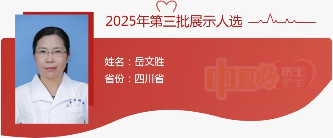 岳文胜,川北医学院附属医院超声医学科副主任(主持工作),主任医师。她深耕超声医学,带领科室亚专业全面发展。同时积极投身基层医疗帮扶,参与多地医院指导及义诊。从事教学科研30余年,带出46名硕士,主持国家级、省级项目10余项。享受国务院政府特殊津贴,曾获四川省科技进步奖等荣誉,被评为四川省学术技术带头人、四川省卫生健康领军人才、“健康四川—大美医者”等称号。