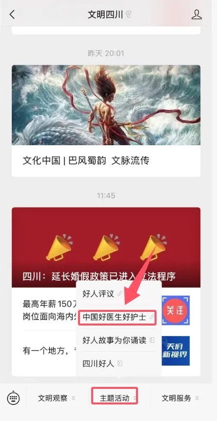 1、长按识别下方二维码,关注“文明四川”公众号。