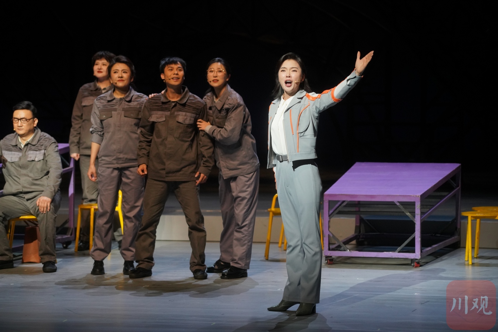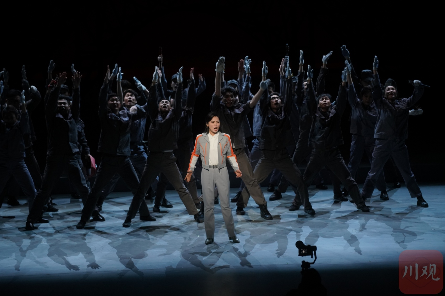 记者在《逐梦》成都首演现场看到,全剧共包含20首原创歌曲,作为女主角,陈思思独唱、领唱了其中18首。近两个小时的演出中,她几乎全程在舞台,表演投入、唱功扎实,成为全场焦点。陈思思笑言:“剧中我饰演的陈雨虹,是技术研发的领头人;而在现实创作中,我作为艺术总监,也承担着带领团队艺术攻坚的责任。这种角色与身份的重叠,让我在《逐梦》中找到了强烈的情感共鸣与代入感,也帮助我更好地理解并塑造这个人物。”