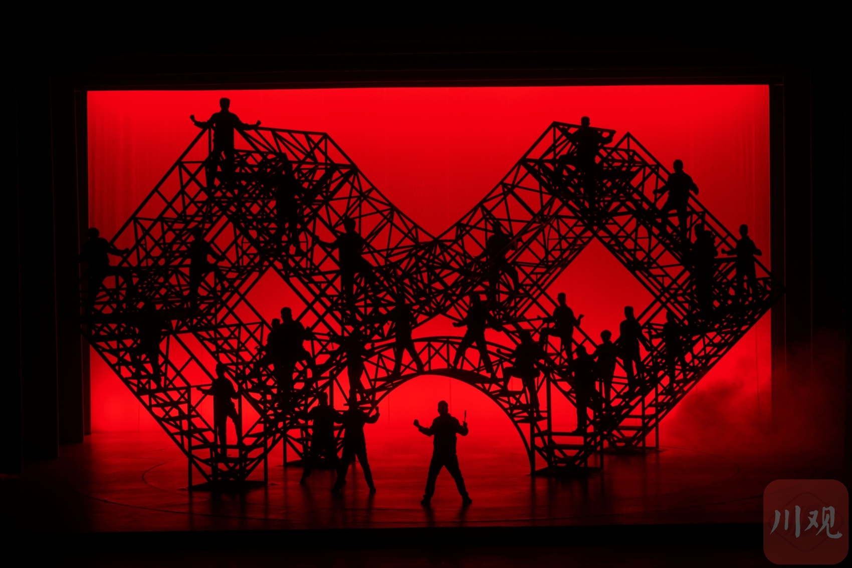 整场舞台画面气势恢宏,展现出集体的力量与奋斗的激情。