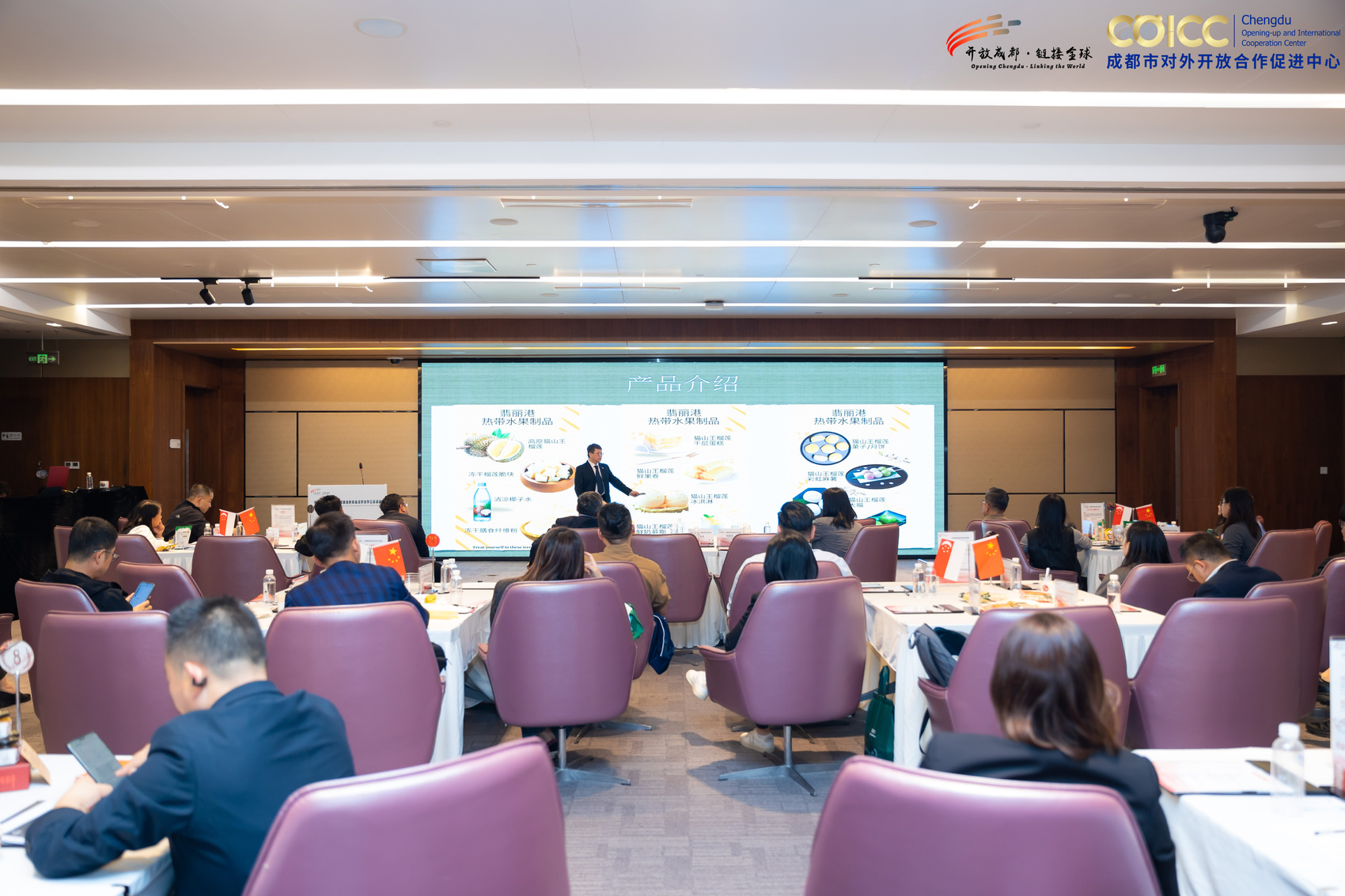 现场,成都市对外开放合作促进中心向新方企业推介“开放成都”合作伙伴计划,该计划作为成都服务“蓉品蓉企出海”的重要内容,着力为企业提供政策咨询、项目对接、市场拓展等出海支持服务,为成都与全球伙伴合作搭建经贸合作桥梁、拓展国际朋友圈。