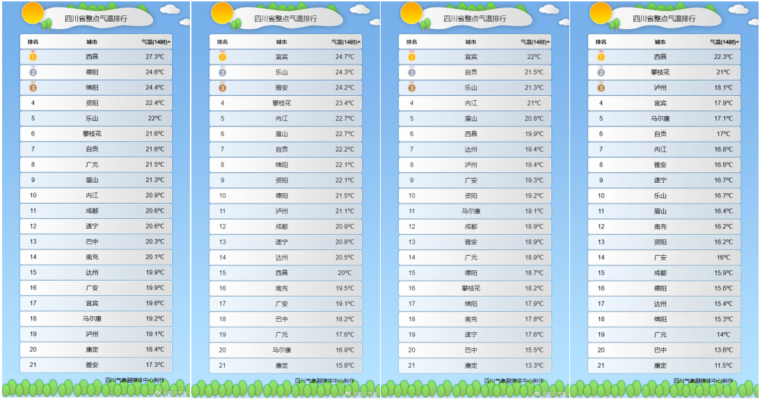综合中央气象台和四川省气象台的预报,本周四川,盆地和高原的气温变化犹如“跷跷板”:盆地气温呈现低开高走态势,包括成都在内的部分城市日最高气温将降至15℃以下,预计在23日前后探底,随后气温快速反弹;而在川西高原则是高开低走,24日开始气温将显著下降,中部北部有明显的雨雪天气,需防范川西高原部分高海拔地区明显雨雪天气及道路结冰带来的不利影响。