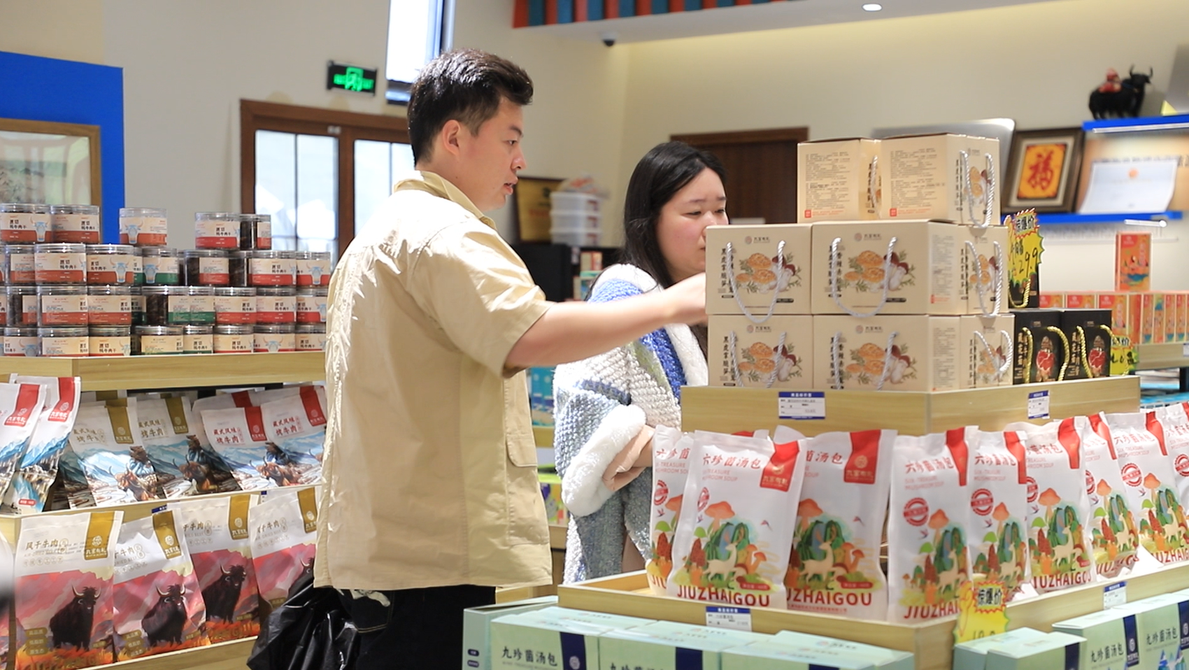 游客在“九寨有礼”门店选购旅游特产。九寨沟县融媒体中心供图
