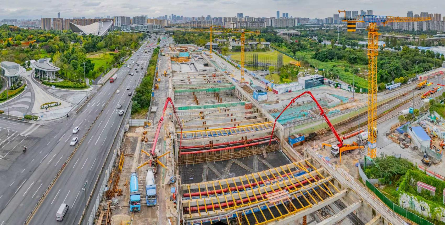 面对复杂的建设环境,项目团队坚持占一条车道便还一条车道原则,保障道路通行顺畅;同时通过引入BIM技术等智能化技术,预先对车站建设进行模拟。另外,车站基坑需要在杂填土、粉质黏土、卵石土及泥岩等软硬交替的复杂地层中精准开挖,对挖掘和监测技术要求极高。为此,项目团队引入了AI监测系统,对基坑进行24小时毫米级监控。“一旦发现异常,系统会立即发出预警,实时进行调整,最大限度保障施工精准、安全。” 项目负责人覃君补充。