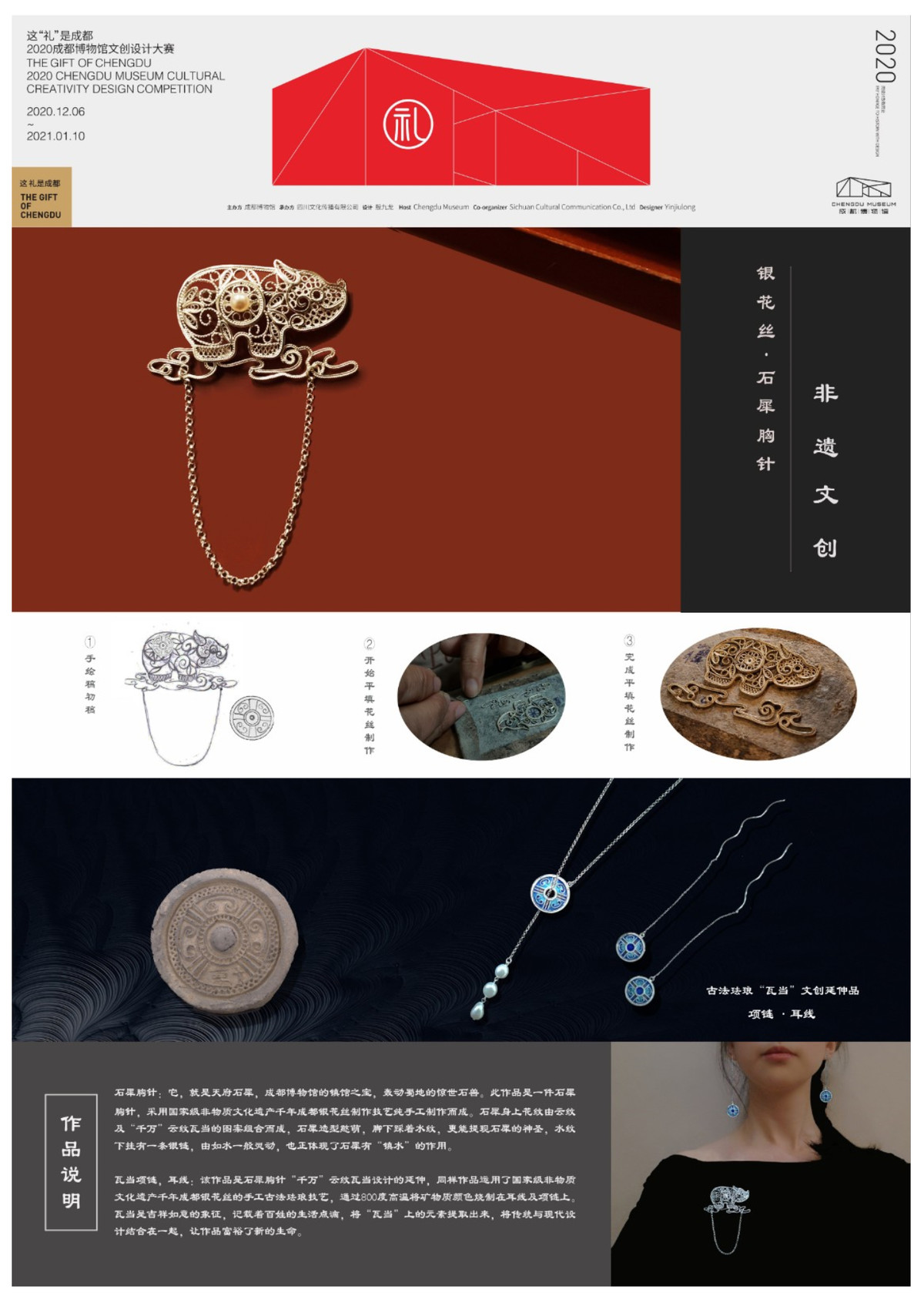 本次大赛由成都博物馆主办,四川文化传播有限公司承办,以“这礼是成都”为主题,旨在鼓励参赛者“用创意致敬历史,让文物赋能生活”,将成都博物馆馆藏文物元素和四川文化的精髓融入创意设计,对文博文化进行创造性延展、创新性演绎,通过“文物IP”与“设计”嫁接,在活跃“设计圈”的同时,传承和弘扬具有厚重底蕴的天府文化。