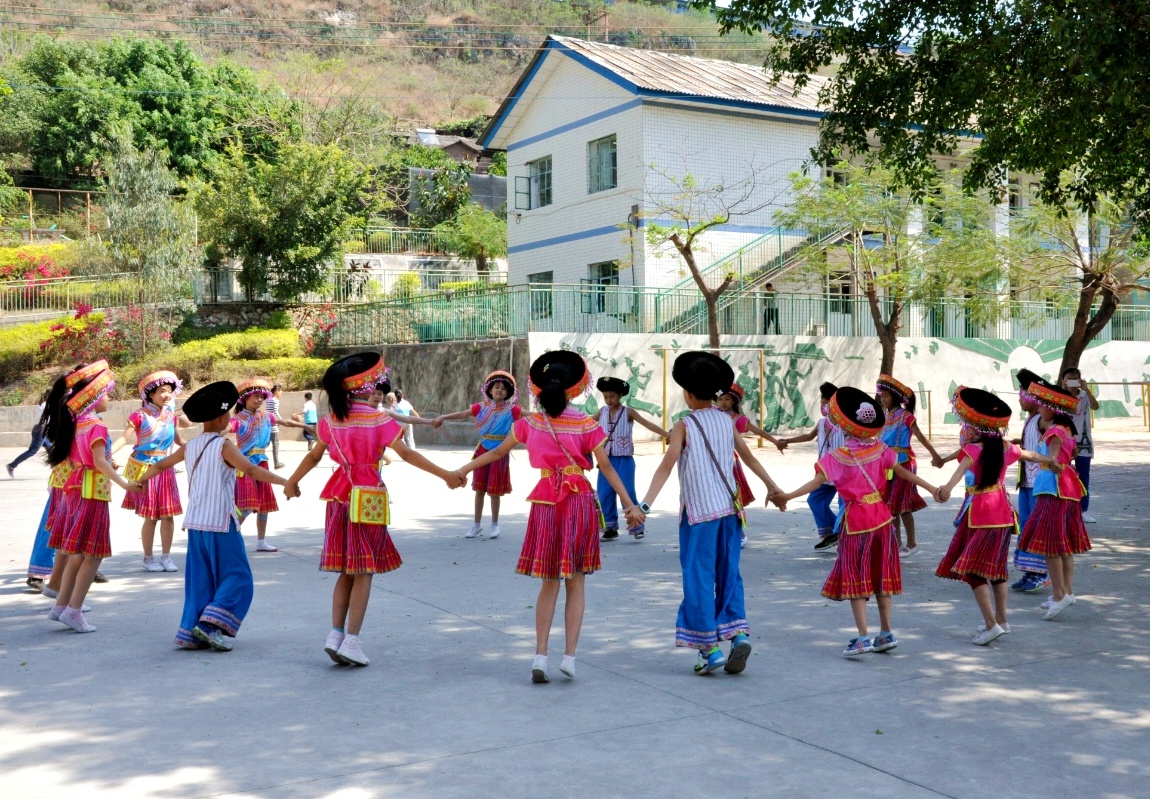 当一代代迤沙拉村村民传承着羊皮鼓舞、谈经古乐时,同样在金沙江畔的攀枝花市西区格里坪镇小学校,孩子们用稚嫩嗓音唱响傈僳民歌。这是攀枝花市西区校园里再寻常不过的“非遗时间”。
