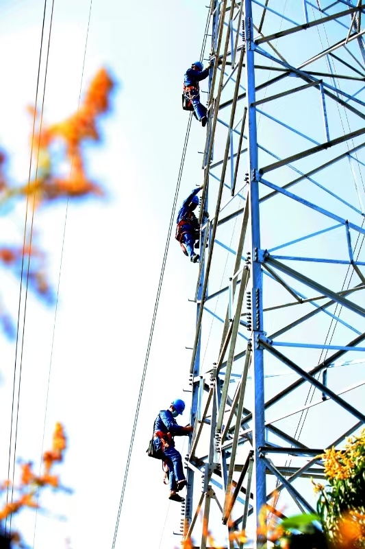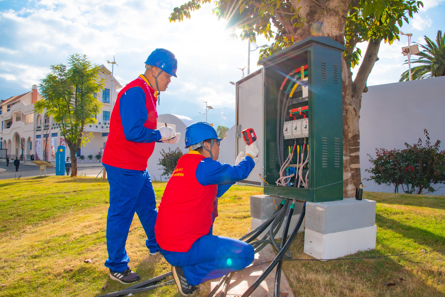 电力人员检查维修电力设施