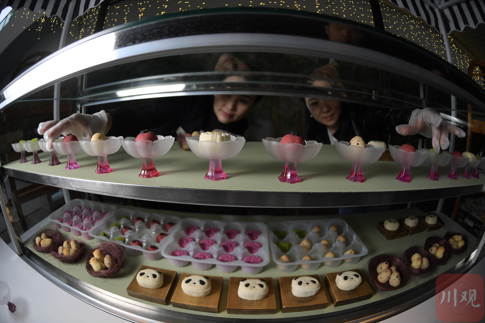 10月21日,记者实地探访该体验中心,展柜中陈列的黄鹂酥、雪酥熊猫、槐叶米糕、五黑养生馒头、天府调色板熊猫米糕等十余款创意糕点,造型别致、色彩协调,宛如一件件可食用的艺术品,令人眼前一亮。部分食客面对如此美的创意糕点直呼不忍下嘴。