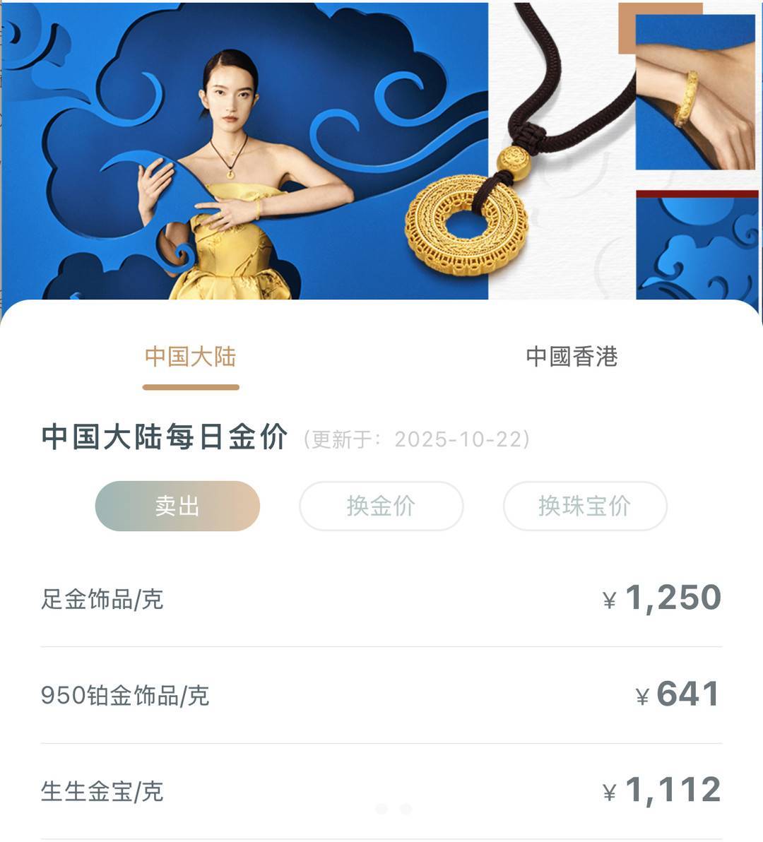 记者注意到,国内金饰价格也受到影响,周生生品牌金饰价格前一日还是1289元/克,今日价格跌到1250元/克,一夜跌去39元/克。