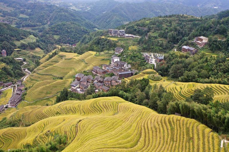 眼下,广西龙胜各族自治县龙脊梯田一片金黄,成为众多游客观光“打卡”的热门景点。龙脊梯田已有2300多年历史,是联合国粮农组织认证的全球重要农业文化遗产。