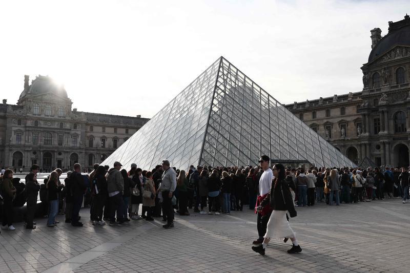 10月22日,大量游客排队进入法国巴黎卢浮宫博物馆。
