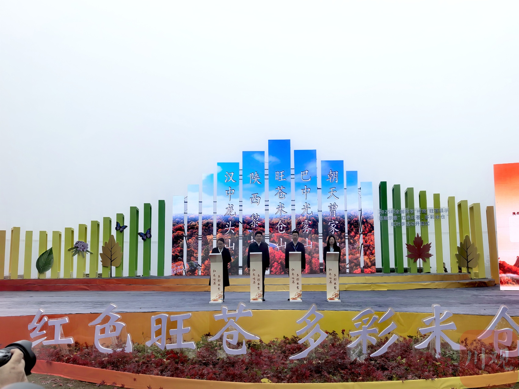 10月22日,2025年全国秋季“村晚”旺苍县示范展示暨“红色旺苍、多彩米仓”红叶季活动开幕式在广元市旺苍县盐井河峡谷举行。
