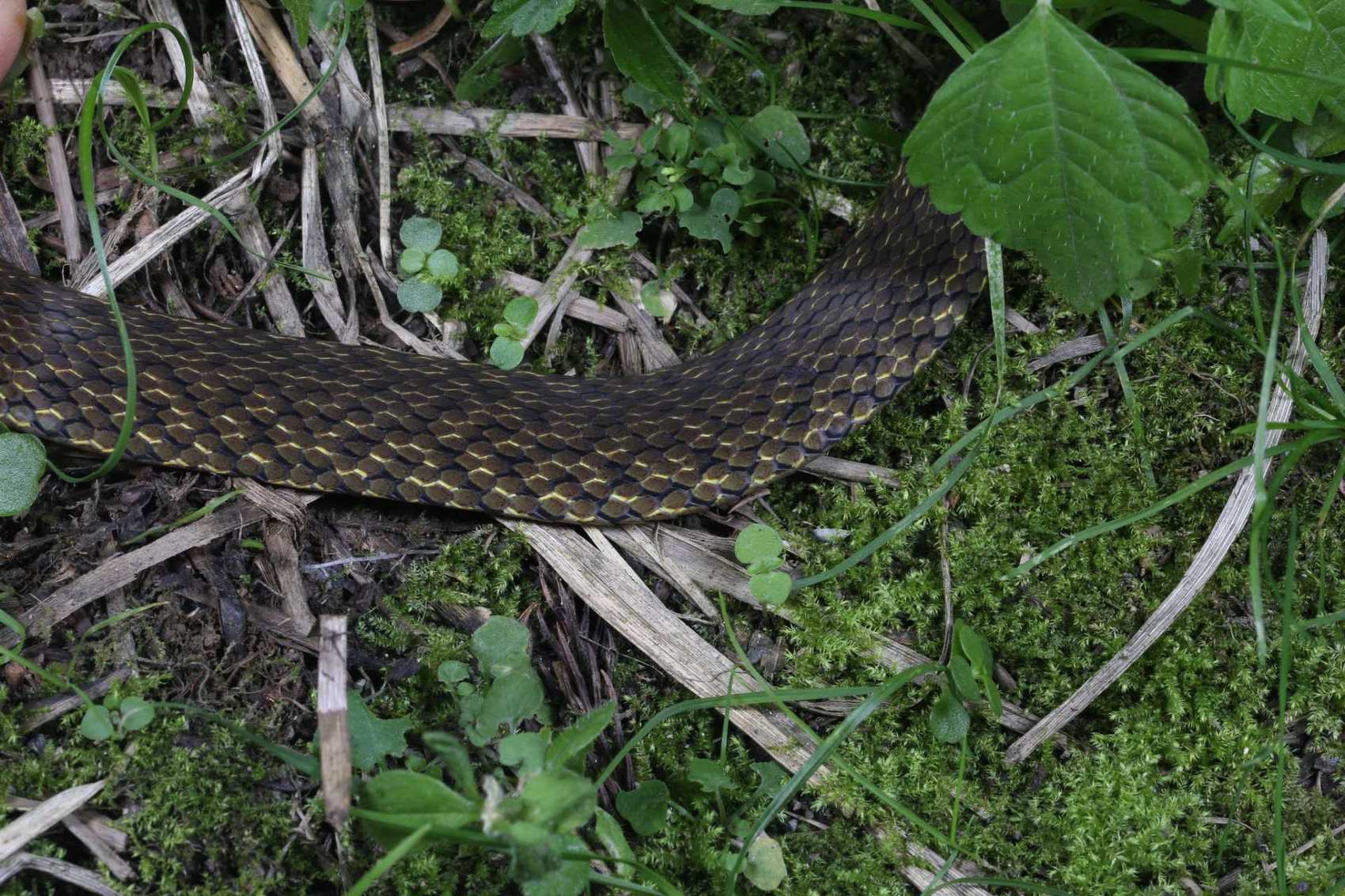调查数据显示,华西颈斑蛇主要分布于大熊猫国家公园成都片区和峨眉山等区域,海拔744米至1900米的亚热带常绿阔叶林带,具有典型的日行性特征,属于小型无毒蛇类,主要以蚯蚓和蛞蝓为食。从外观上看,该物种头体长为约24.3—31.6厘米,颈部有独特的倒“V”形颈斑,背部呈橄榄色,部分背鳞边缘呈金色和黑色斑点形成网状图案,腹部为均匀的麦黄色,部分个体腹部带有黑斑。