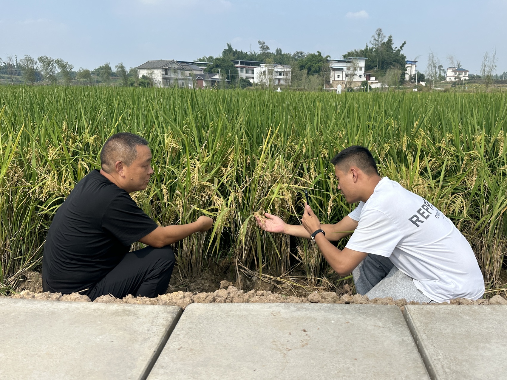 田埂边,梅岫峰正给几个农户演示稻桩保护的技巧,手里拿着尺子量稻桩高度;不远处,博士团队的成员在记录稻田湿度数据。这样的场景,如今在富顺的田间很常见。