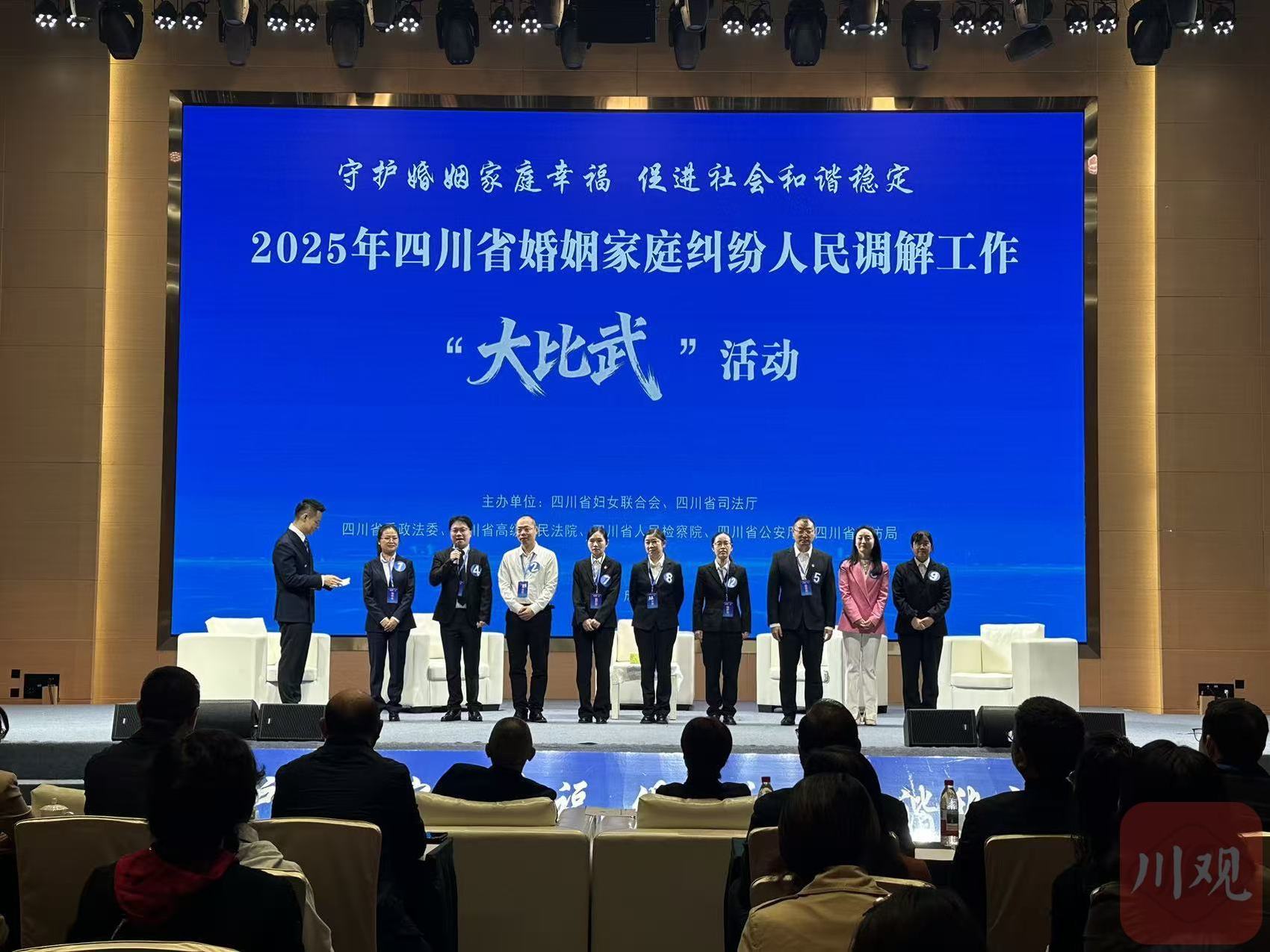 10月22日,四川省婚姻家庭纠纷人民调解工作“大比武”活动决赛暨颁奖典礼(以下简称“大比武”)在四川省妇女儿童中心落幕。来自21个市州的63名人民调解员、司法干部、法官、检察官、优秀律师、妇联干部和婚调志愿者在为期2天的初赛、决赛环节中“硬核”比拼。