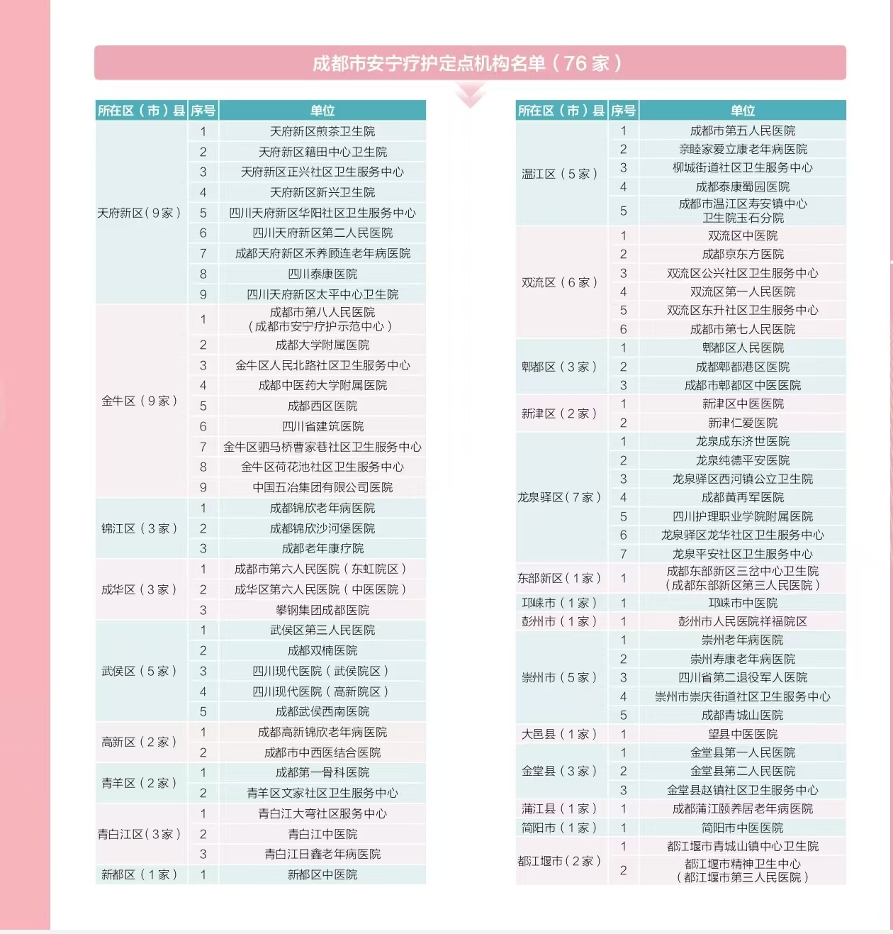 就在10月21日,记者从成都市卫生健康委获悉,目前全市已确定76家安宁疗护定点机构,完整名单已向社会公布,一起看看吧。