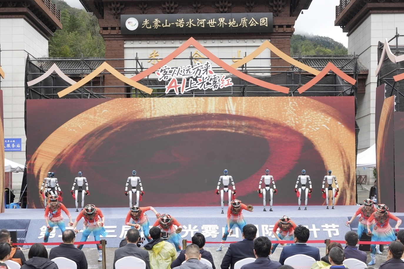 在科技嘉年华上,机器人表演非遗代表性项目——翻山铰子。(白川东 摄)