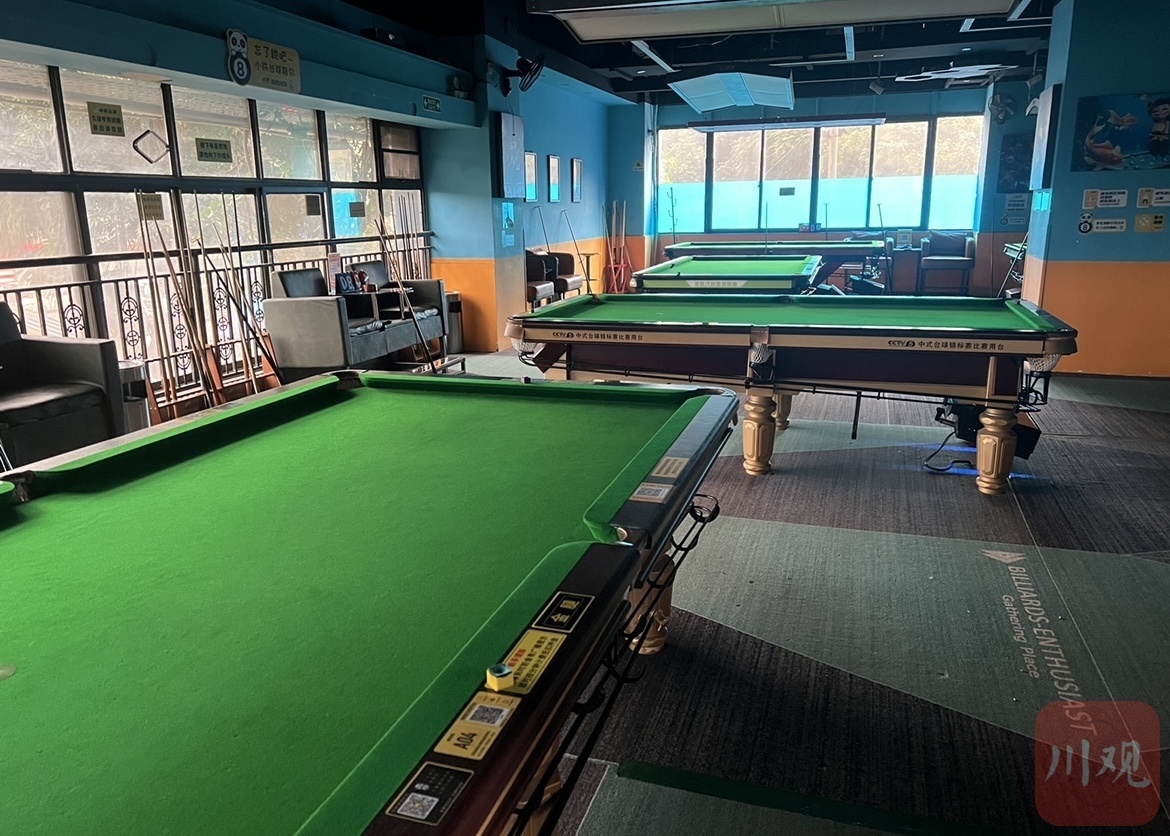 10月21日下午6时,川观新闻记者来到了成都市金牛区的一家台球厅。虽然当天是工作日,但店内摆放的8张中式台球桌,其中5桌已有客人使用。