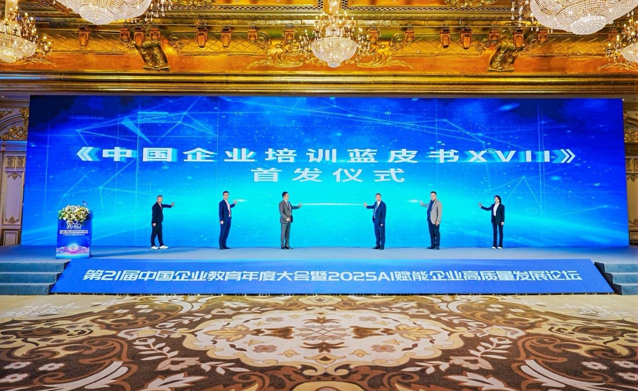 紧随其后的《中国企业培训蓝皮书XVII》首发仪式成为全场另一大焦点。中国企业评价协会负责人、决策咨询委员会主任李春伟在解读中指出,本年度的蓝皮书以“AI赋能人才发展”为主题,系统构建了AI赋能人才发展的新范式,提炼了企业AI转型的典型经验,并开发了实用的方法论工具。“它不仅是研究成果的集中呈现,更是一份面向未来的行动宣言。”李春伟强调,希望蓝皮书能成为企业转型的“工具书”、行业交流的“连心桥”、政策制定的“参考系”。