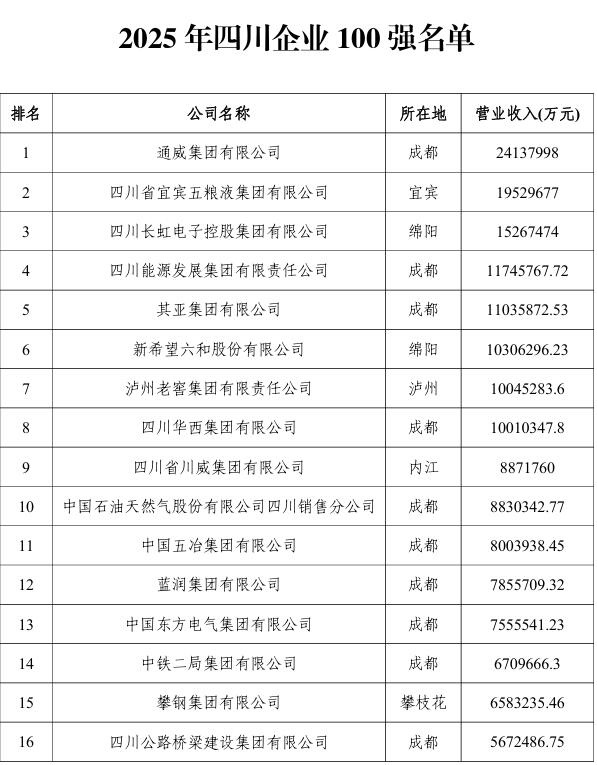 10月23日,2025四川大企业大集团发展大会在成都举行,会上发布了2025年四川企业100强榜单。
