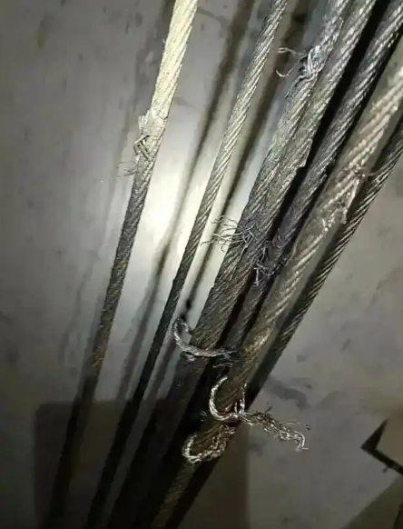 电梯检修人员巡检时发现电梯钢绳被人恶意切割