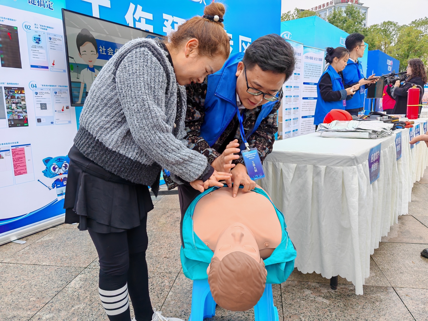 “哎呀,这个感觉太真实了,以后上岗可得万分小心!”在工伤预防专区,一位建筑工友在体验了模拟触电装置后心有余悸地感叹。这里就是一个“安全生产实景课堂”,志愿者们指导市民穿上厚重的防火防护服,戴上坚实的安全头盔,系上高空作业安全绳,感受特殊岗位的责任与重量;虚拟现实设备让参与者“亲临”事故现场,心肺复苏教学则普及了生命救援技能。通过“体验式”宣传,将“安全第一,预防为主”的理念深深刻入每个人心中。