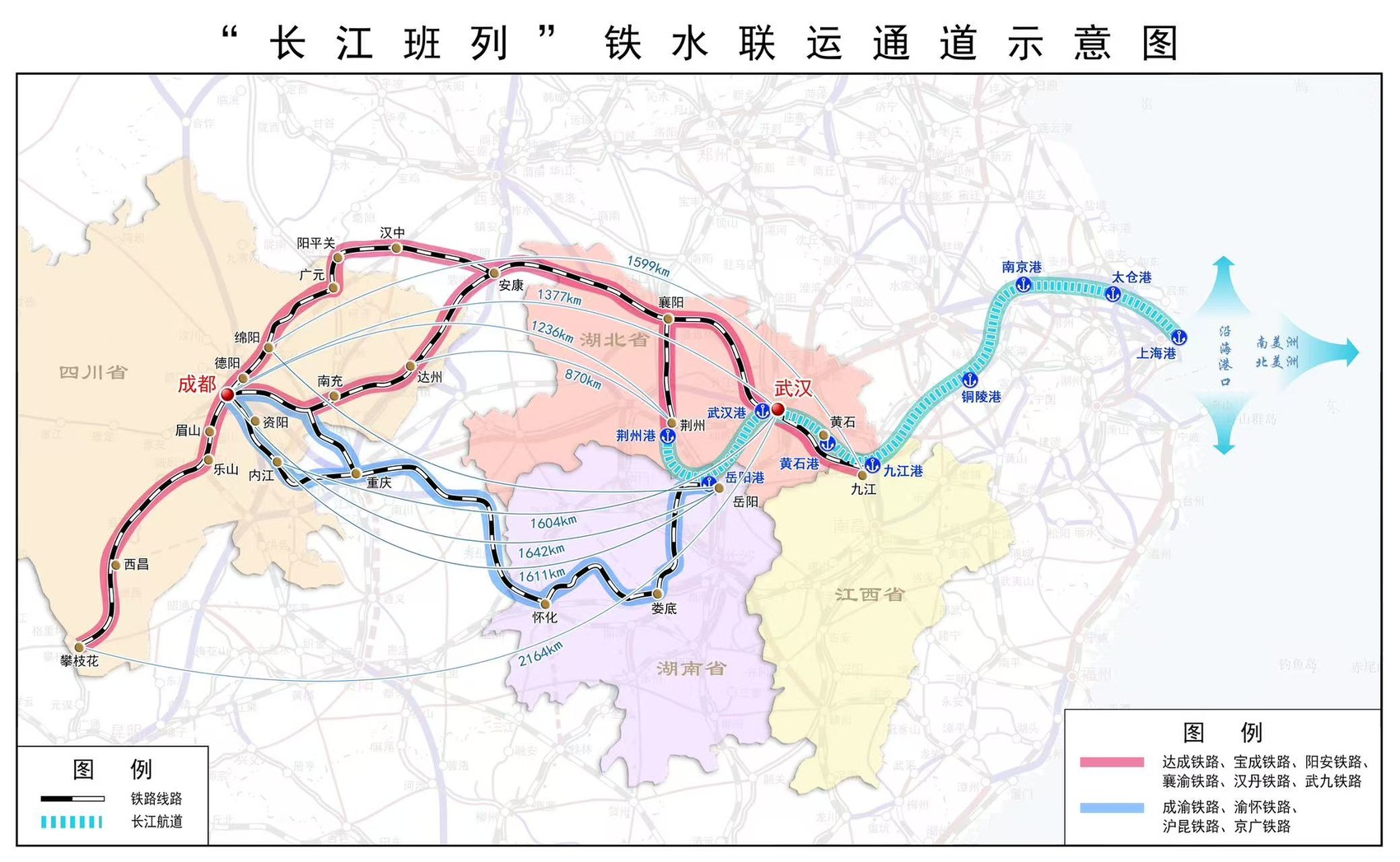 “长江班列”是四川为破解长江三峡“翻坝难”、提升长江黄金水道运输能力而开行的铁水联运班列。运营方蜀道班列分公司相关负责人介绍,班列主要采用长江上、中游铁路+长江中、下游水运的铁水联运体系,以本次发运的玉米为例,货物从江苏南通港经长江水运抵达江西九江港后,无缝换乘铁路发往四川,较传统的水运模式,运输时间由25天直接缩短至10到12天,为跨区域大宗商品运输按下“加速键”。